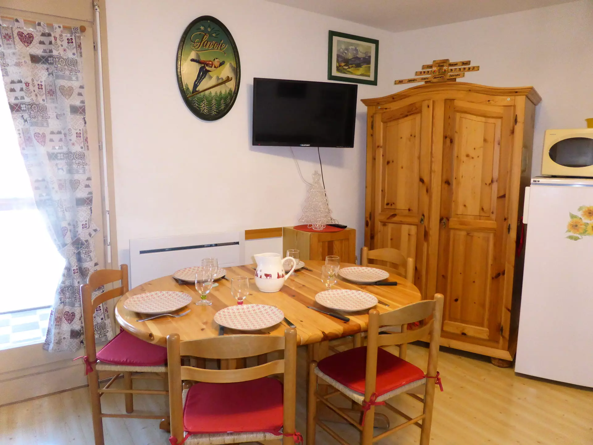 - Living room with convertible sofa (140x190), television with DVD player and dining area.