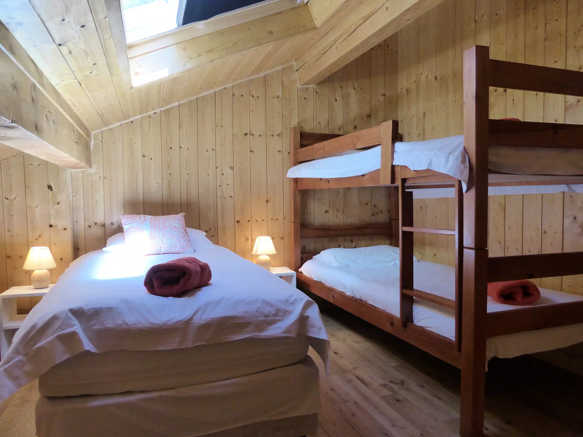 - A bedroom with two bunk beds and a single bed