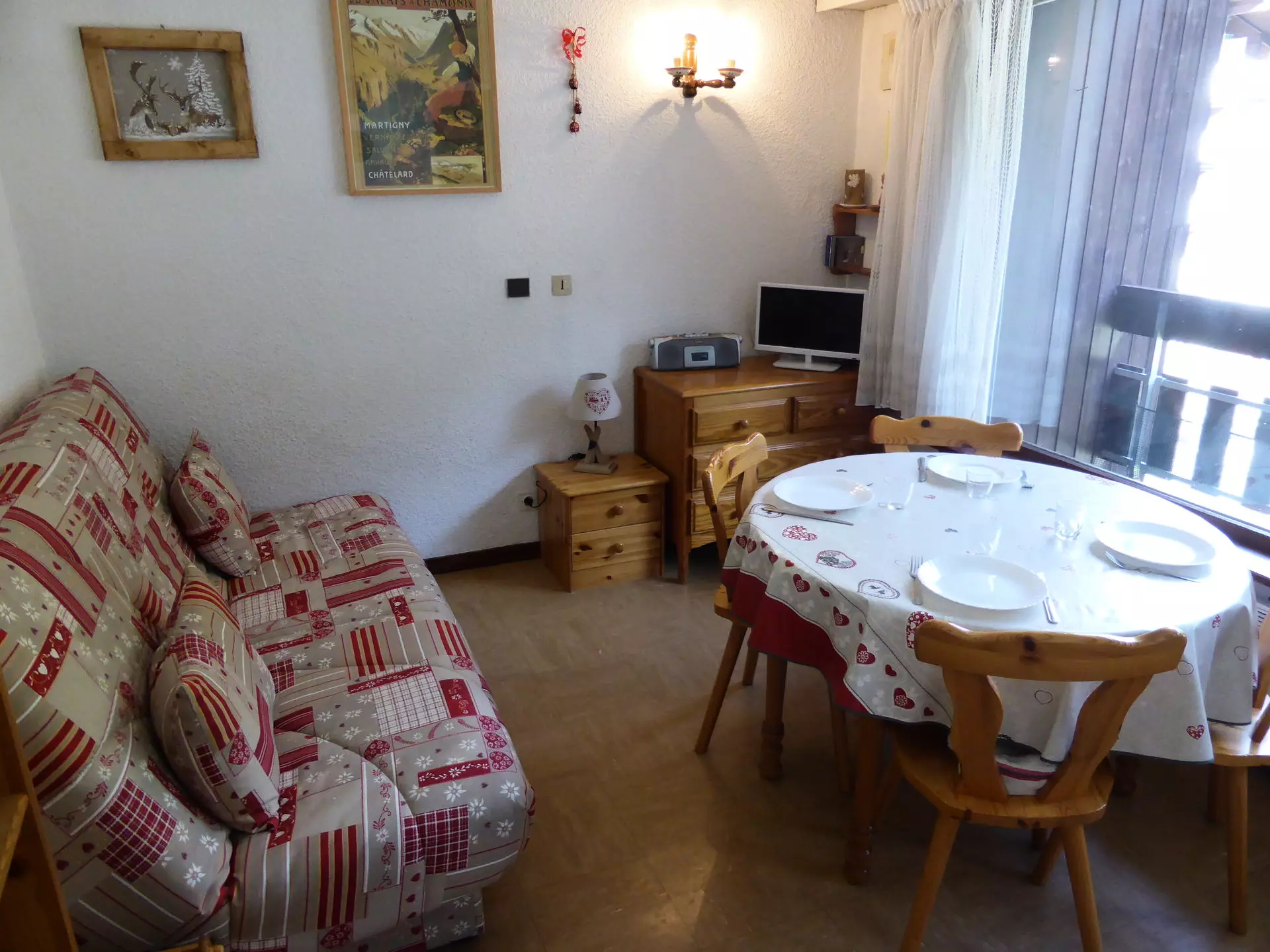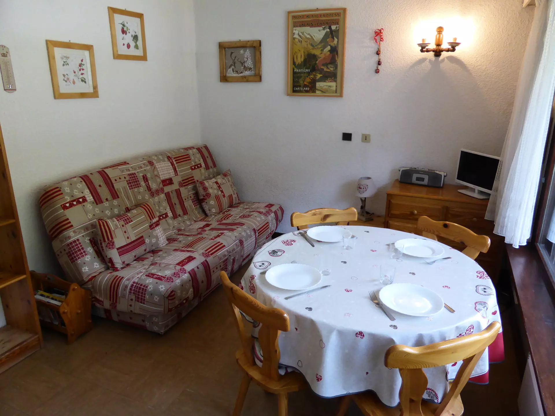 - Living room with sofa bed (140x190), television and dining area.