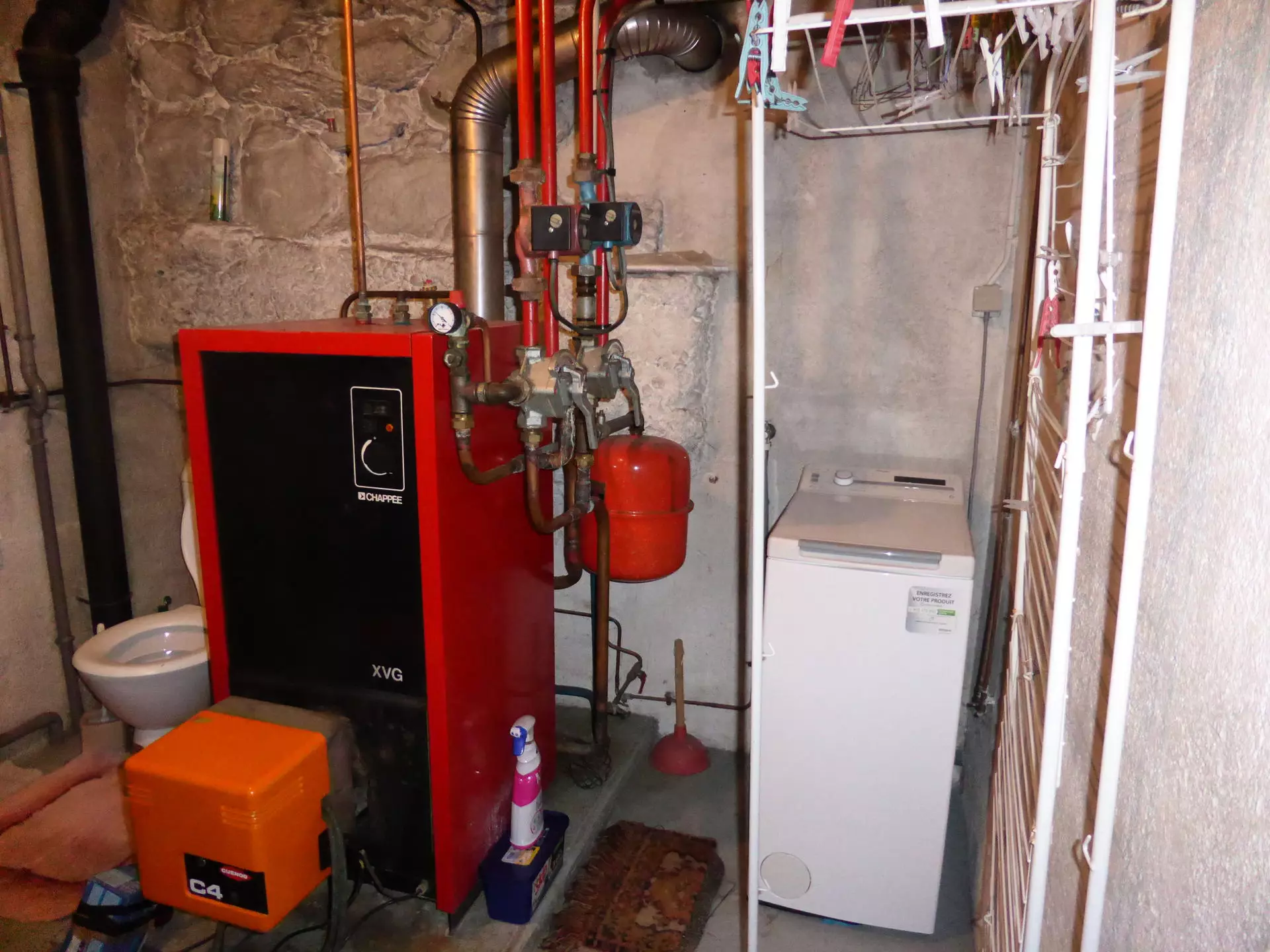 - A boiler room with WC, hand basin, washing machine and boiler.
