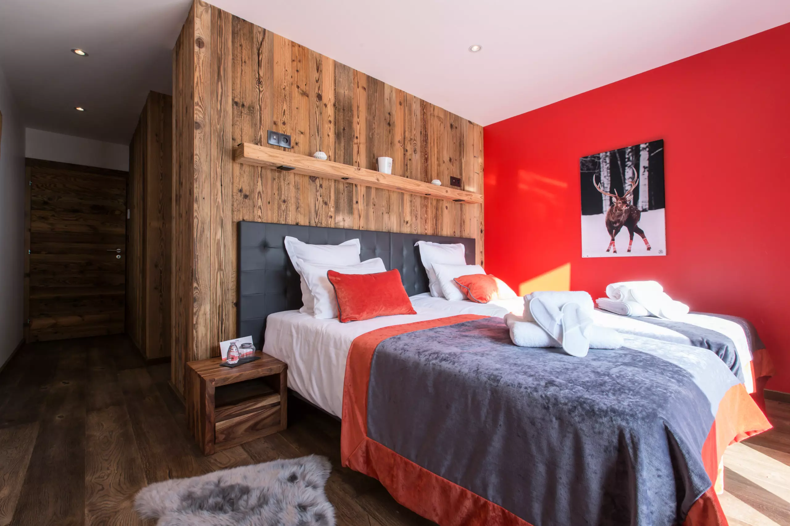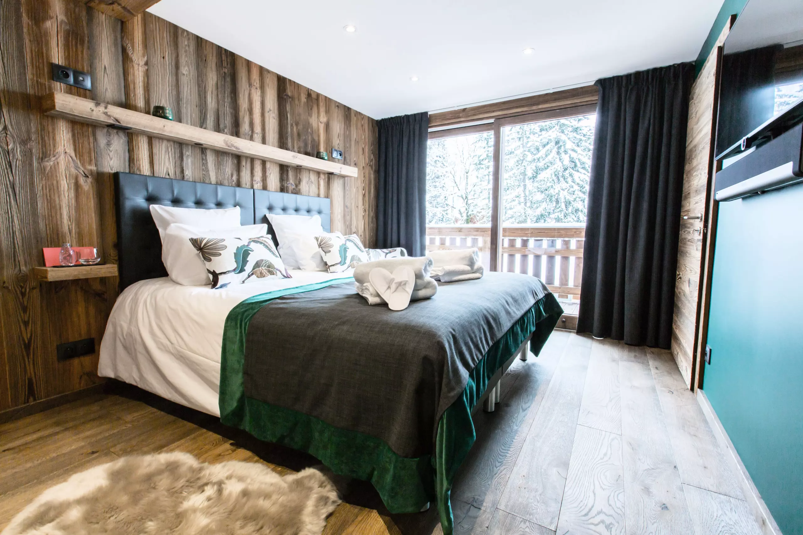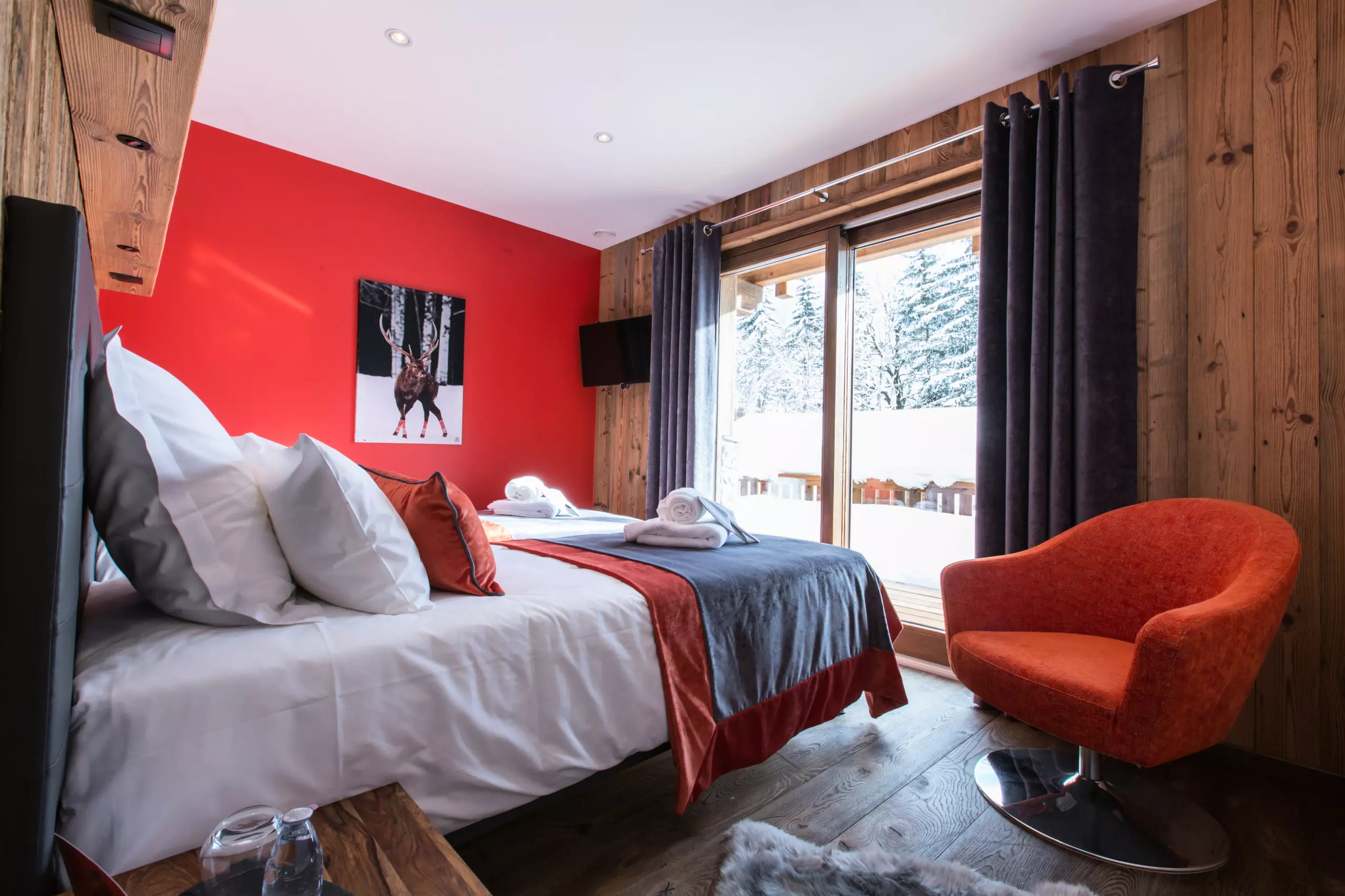 Chalet Clos Saint Jean, a luxury residence designed to enhance your stay experience, opens its doors to you all year round, offering an exceptional space of 500 square meters spread over four levels. With a capacity of 14 people, this remarkable chalet has 8 shower rooms, 1 bathroom, as well as 7 spacious bedrooms, each equipped with a bathroom, a television and a dressing room, while the 40 square meter master suite is equipped with a king-size double bed, an en-suite bathroom with a walk-in shower and phototherapy bathtub, and a television.