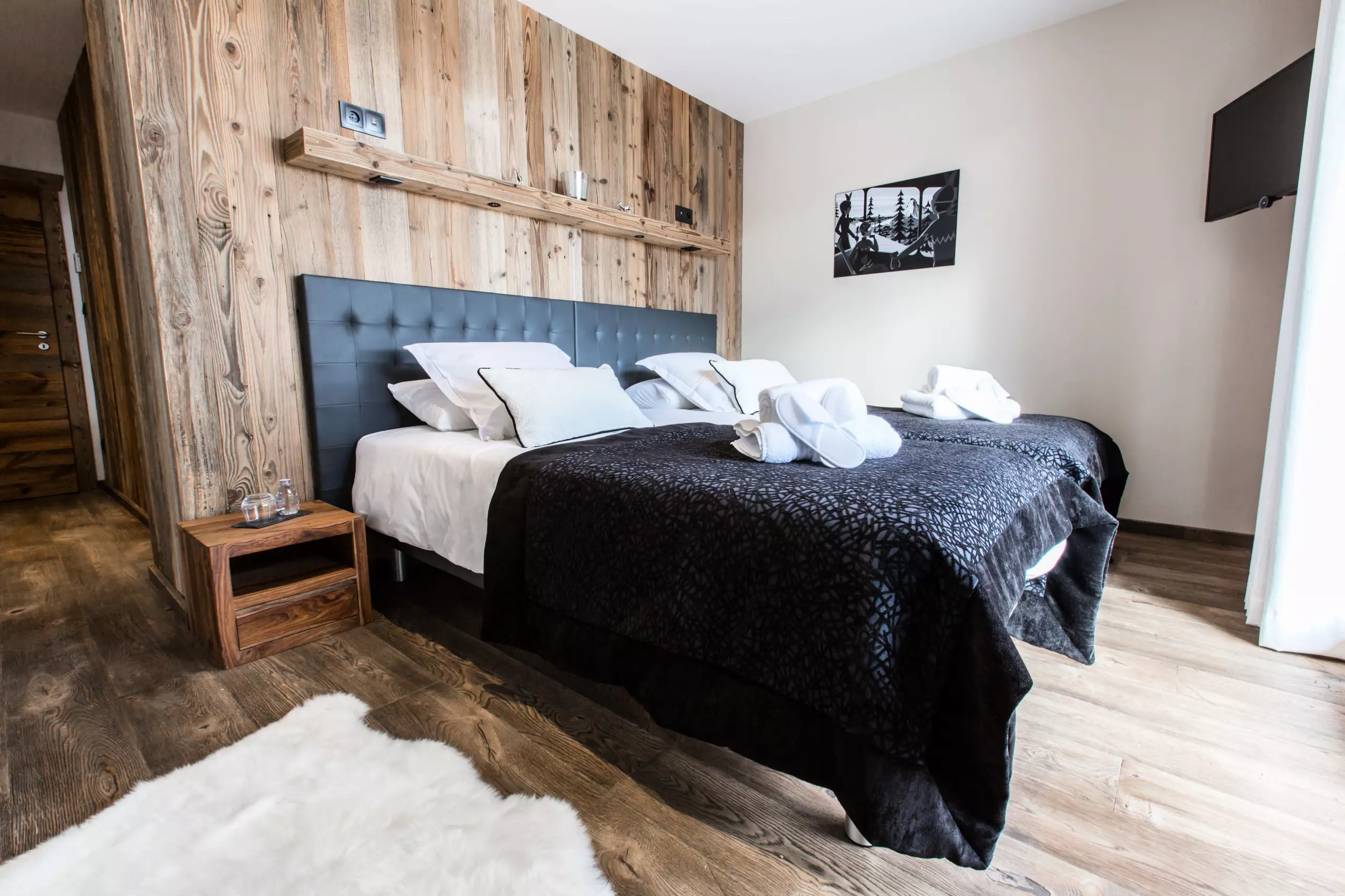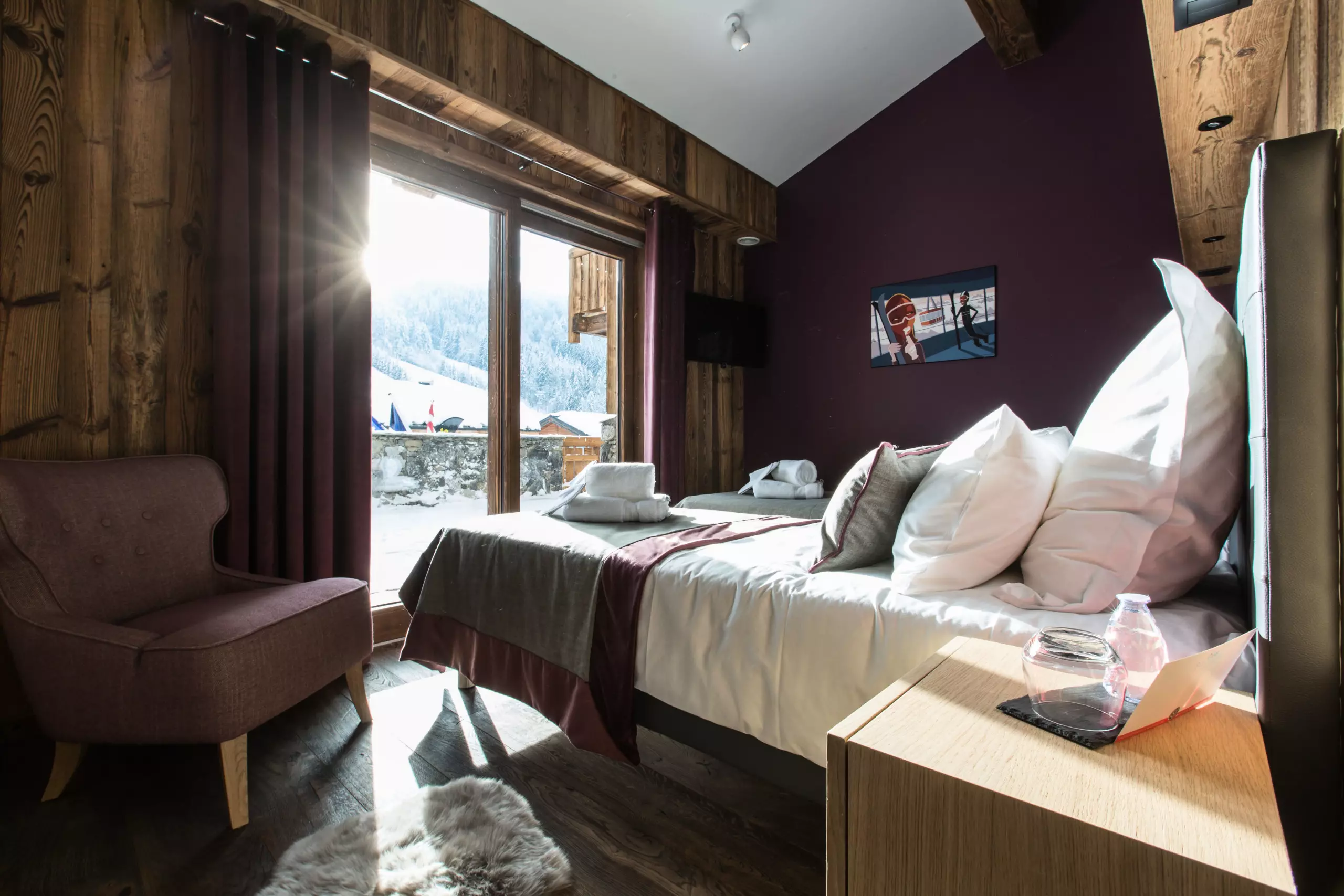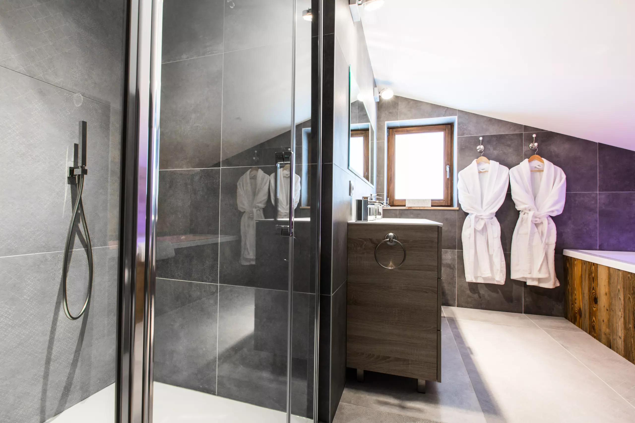 Chalet Clos Saint Jean, a luxury residence designed to enhance your stay experience, opens its doors to you all year round, offering an exceptional space of 500 square meters spread over four levels. With a capacity of 14 people, this remarkable chalet has 8 shower rooms, 1 bathroom, as well as 7 spacious bedrooms, each equipped with a bathroom, a television and a dressing room, while the 40 square meter master suite is equipped with a king-size double bed, an en-suite bathroom with a walk-in shower and phototherapy bathtub, and a television.