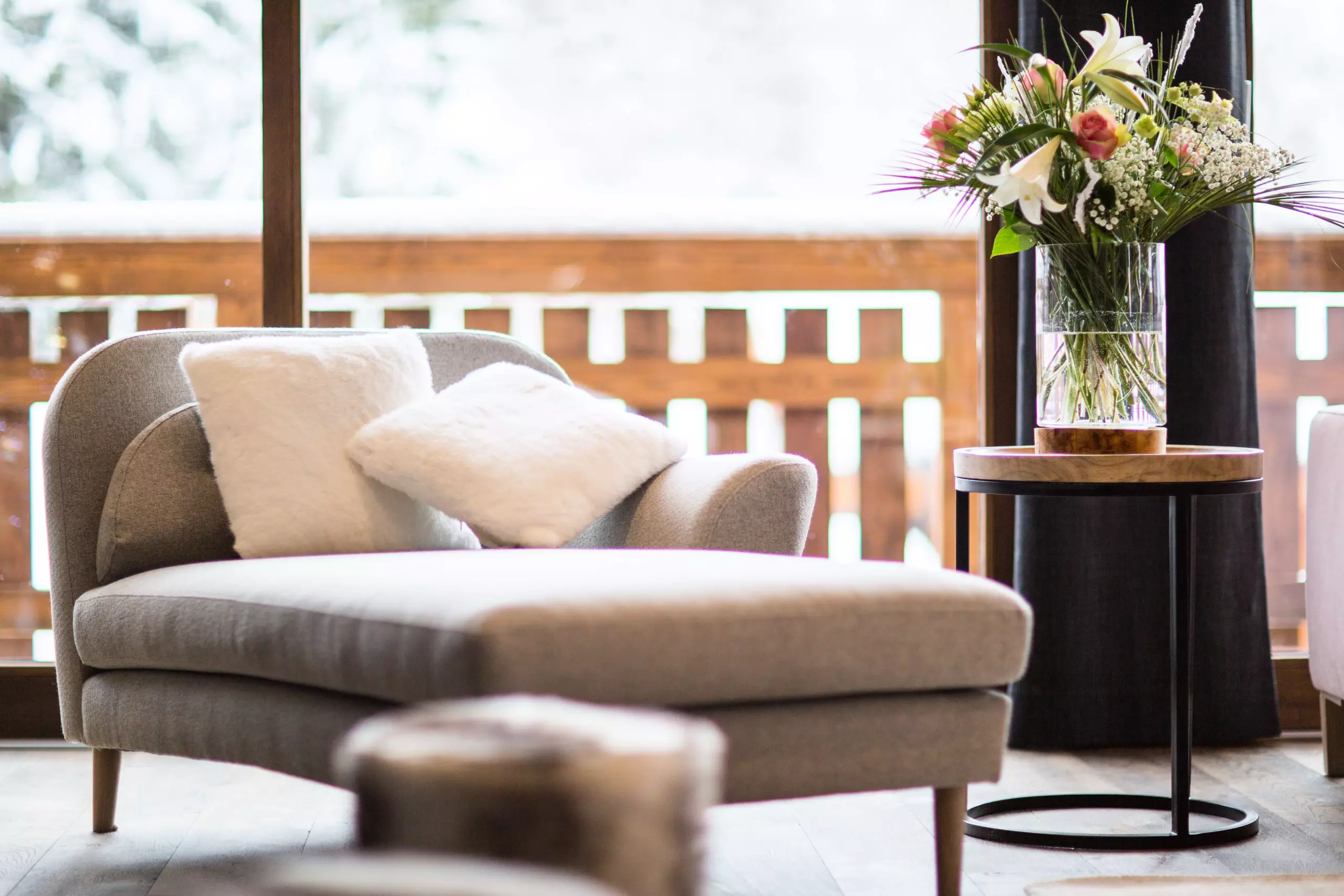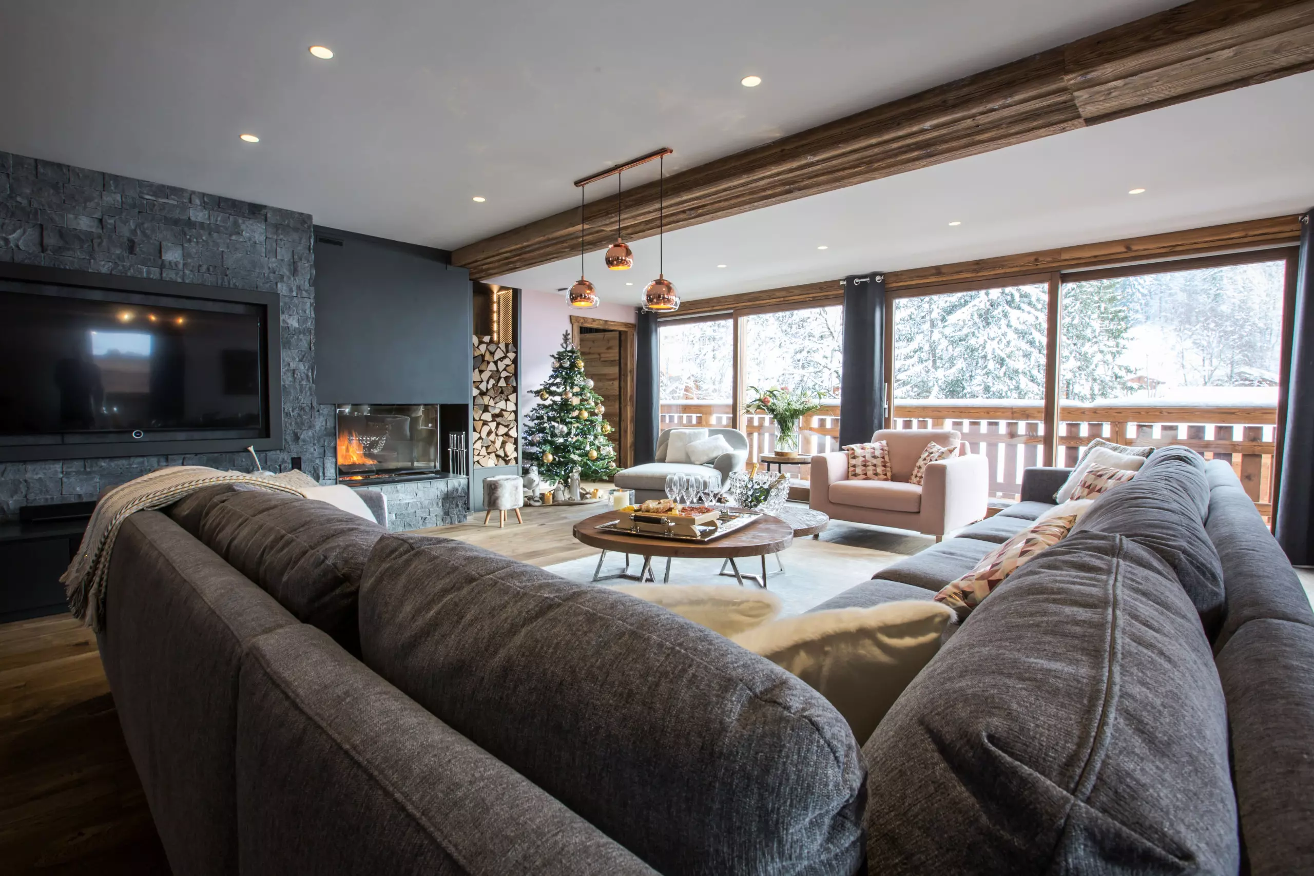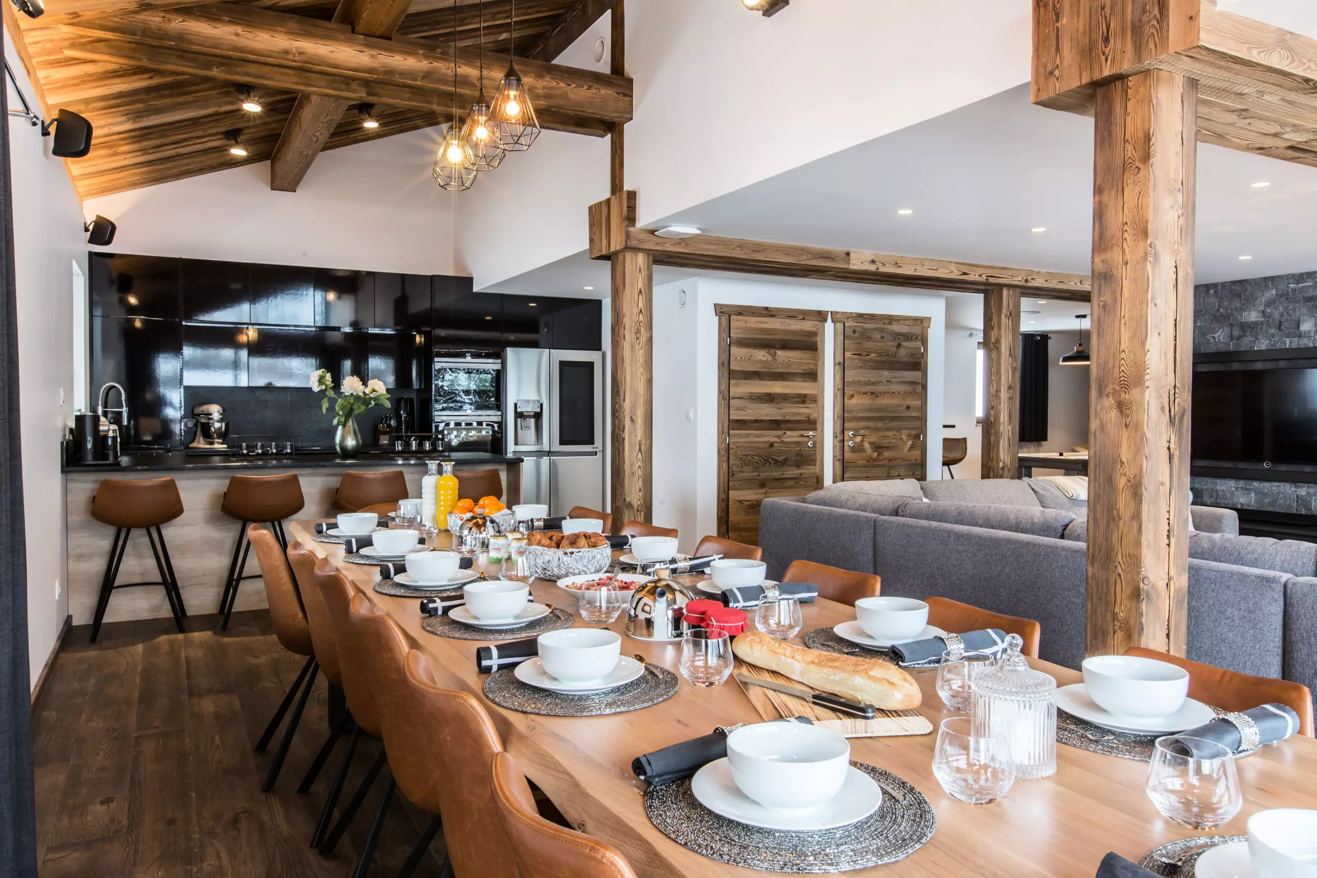 A large outdoor terrace including a 12-seater jacuzzi, a gas barbecue, a lounge area as well as deckchairs are available for you to fully enjoy the space outside the chalet.