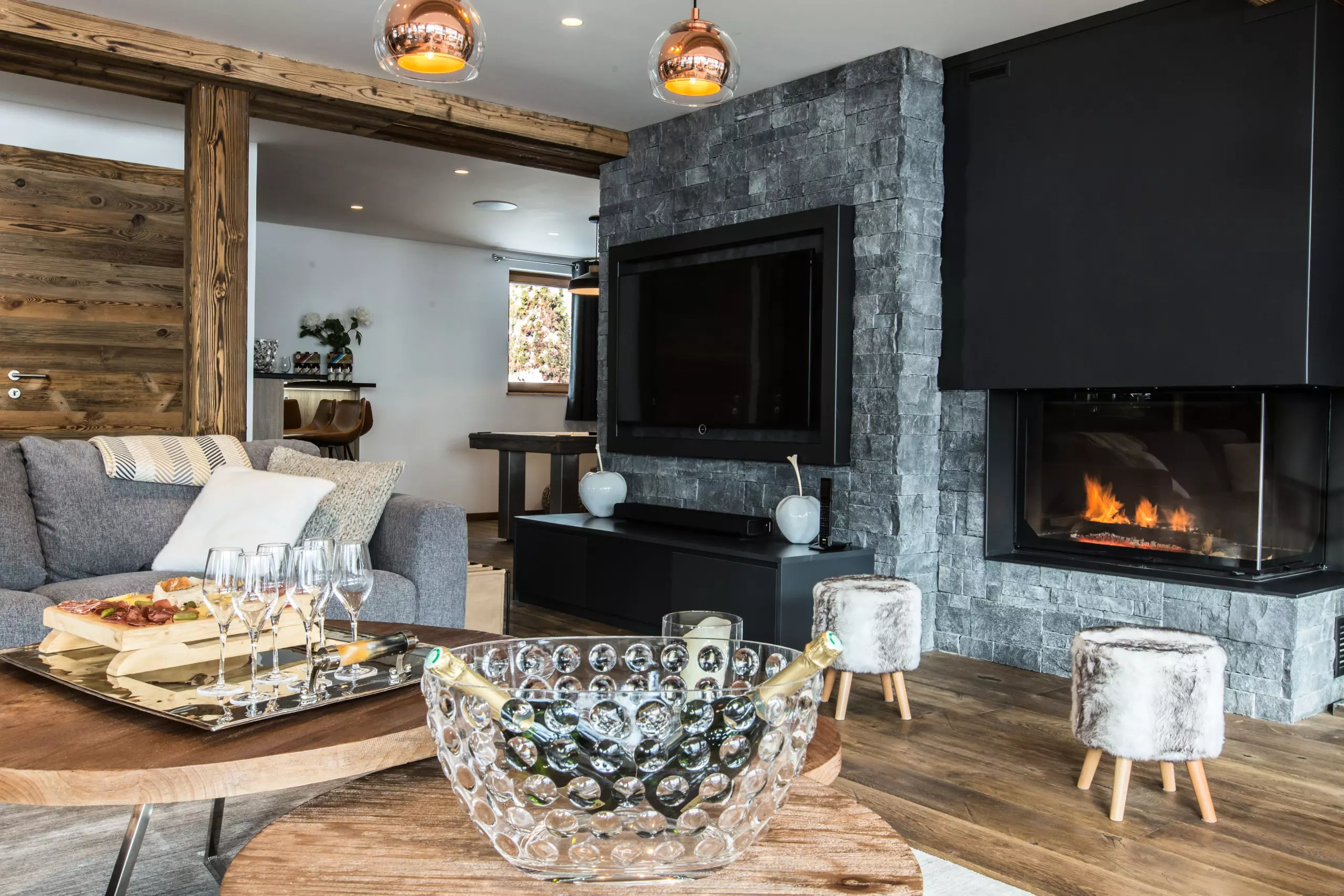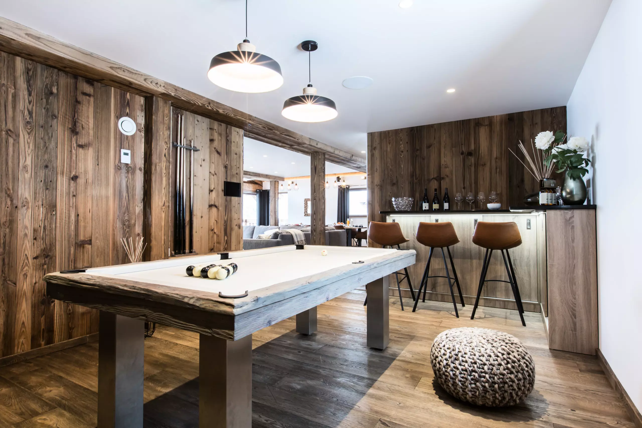 For moments of relaxation with family or friends, the Clos Saint Jean chalet offers you a relaxation area including a hammam and a sauna, a games room with billiards, darts and children's games, as well as a cinema room equipped with 9 armchairs offering a wide range of streaming platforms (Netflix, Amazon Prime, Canal +...) and a games console (PlayStation 4), a fitness room is also at your disposal.