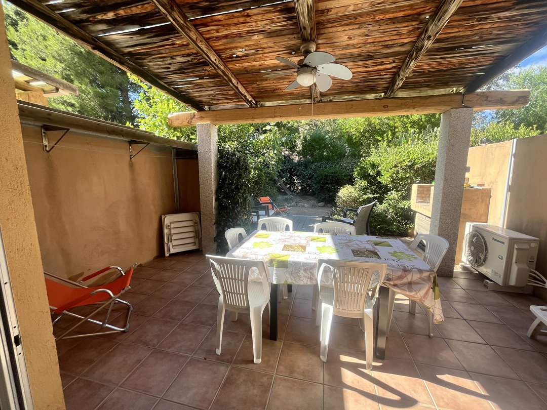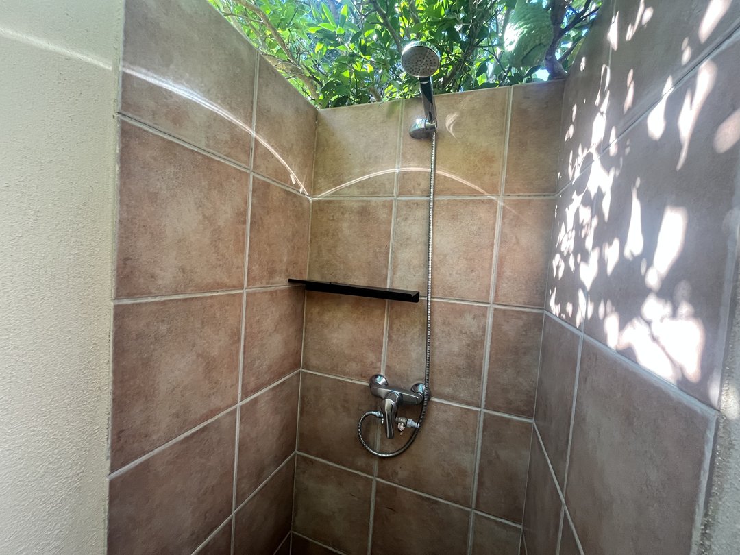 Terrace (covered) with private garden: garden furniture, outdoor shower, barbecue fixed in stone.