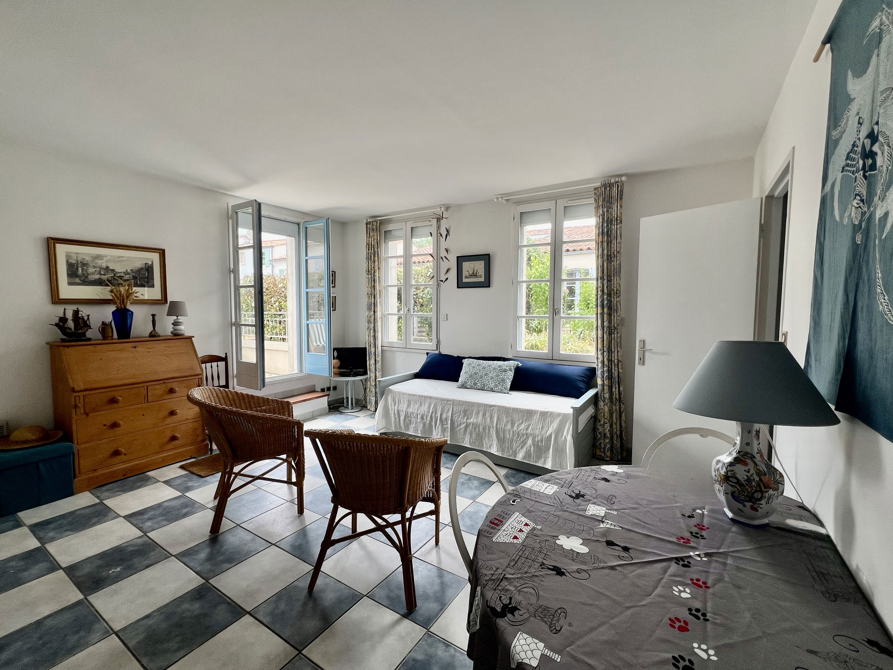 Located in a peaceful residence, in the heart of the port of Saint-Martin-de-Ré, this apartment offers you an ideal setting for a relaxing stay.