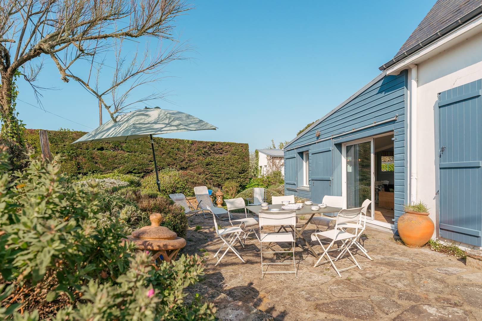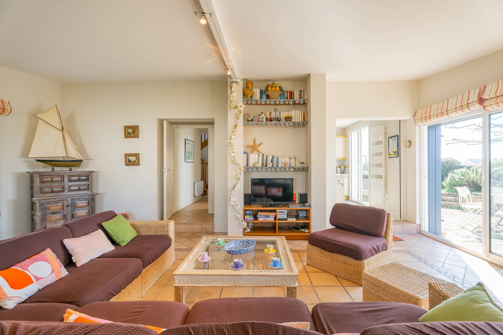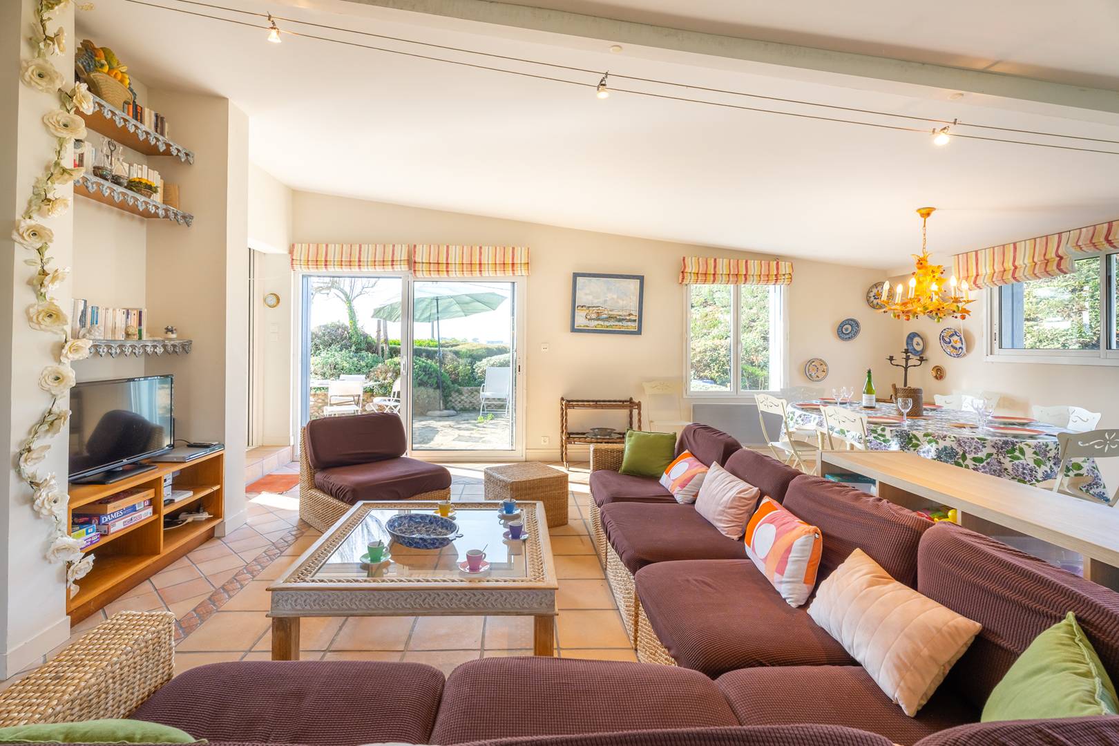 Between Carnac and Plouharnel, ideally located facing the Pointe du Pô, just steps away from the famous GR34 coastal path, 2 km from shops and 4 km from the beaches, a large 7-room house for 10 people (approx. 150m²) with a large enclosed garden and SEA VIEW :