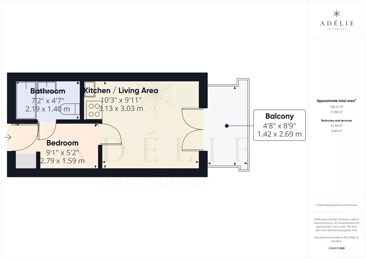HTR 605: 18 m² 1* studio apartment for 2/4 people, located on the 6th floor with elevator. Ground floor entrance from the rear of the building.