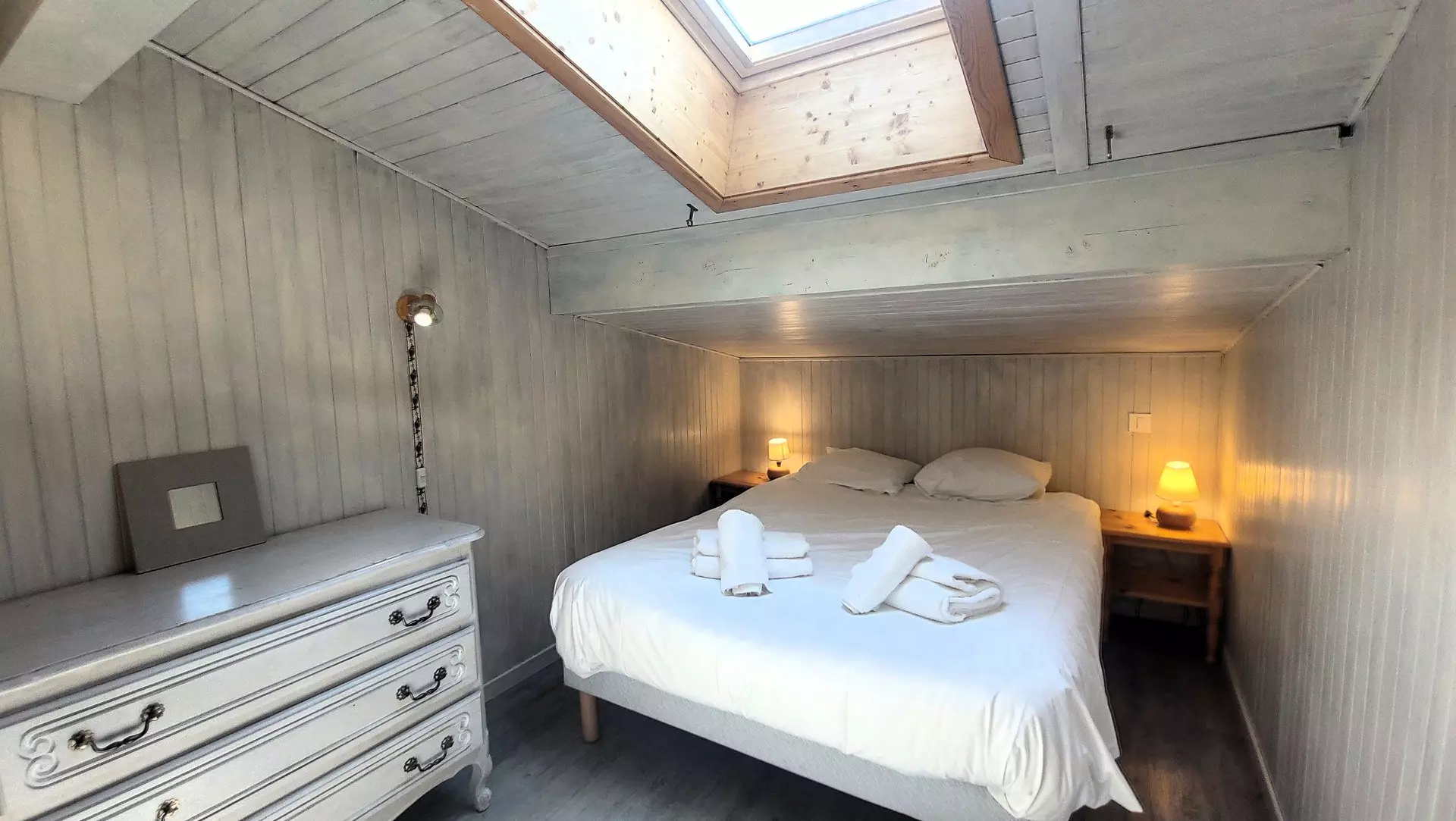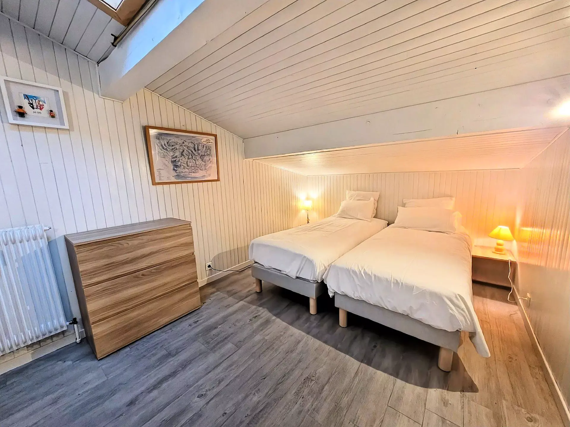 - A bedroom under the roof with 2 single beds of 80cm x 200cm (which can form a double bed)