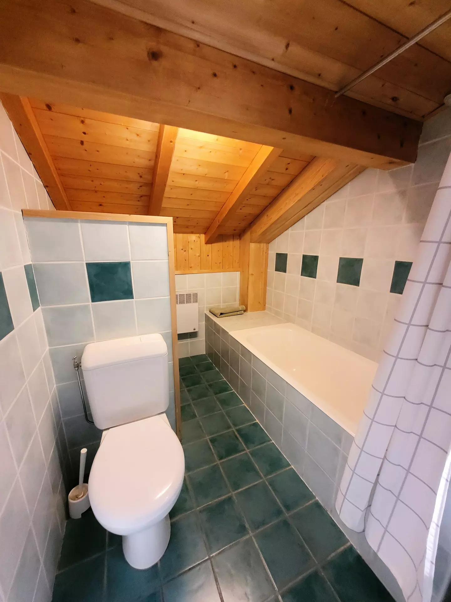 - 1 bedroom with 3 single beds (90x190cm) en suite with bathtub, sink and WC