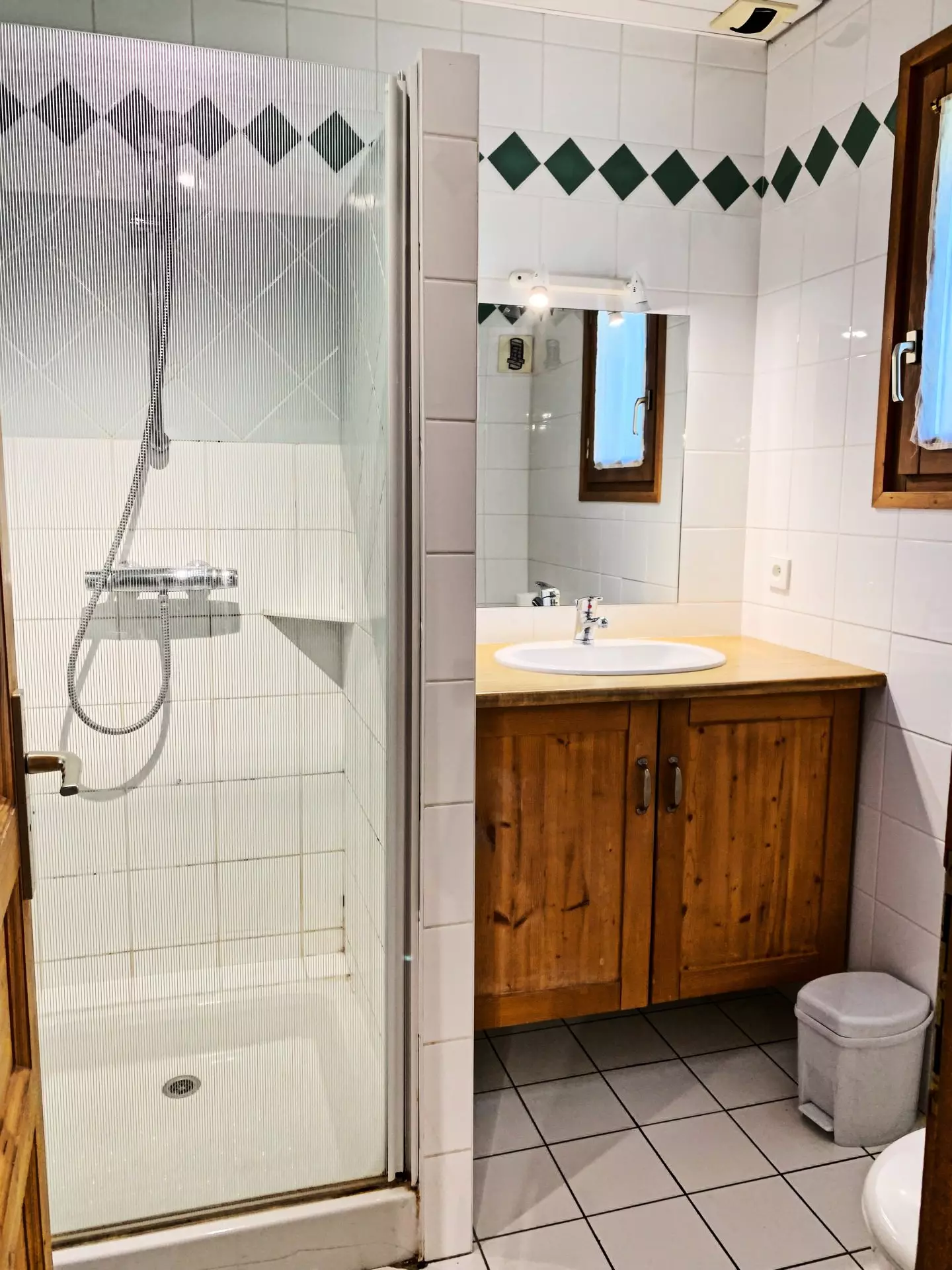 - 1 double bedroom (180x200cm bed), en suite with shower, sink and WC (east-facing garden level accessible via French window)