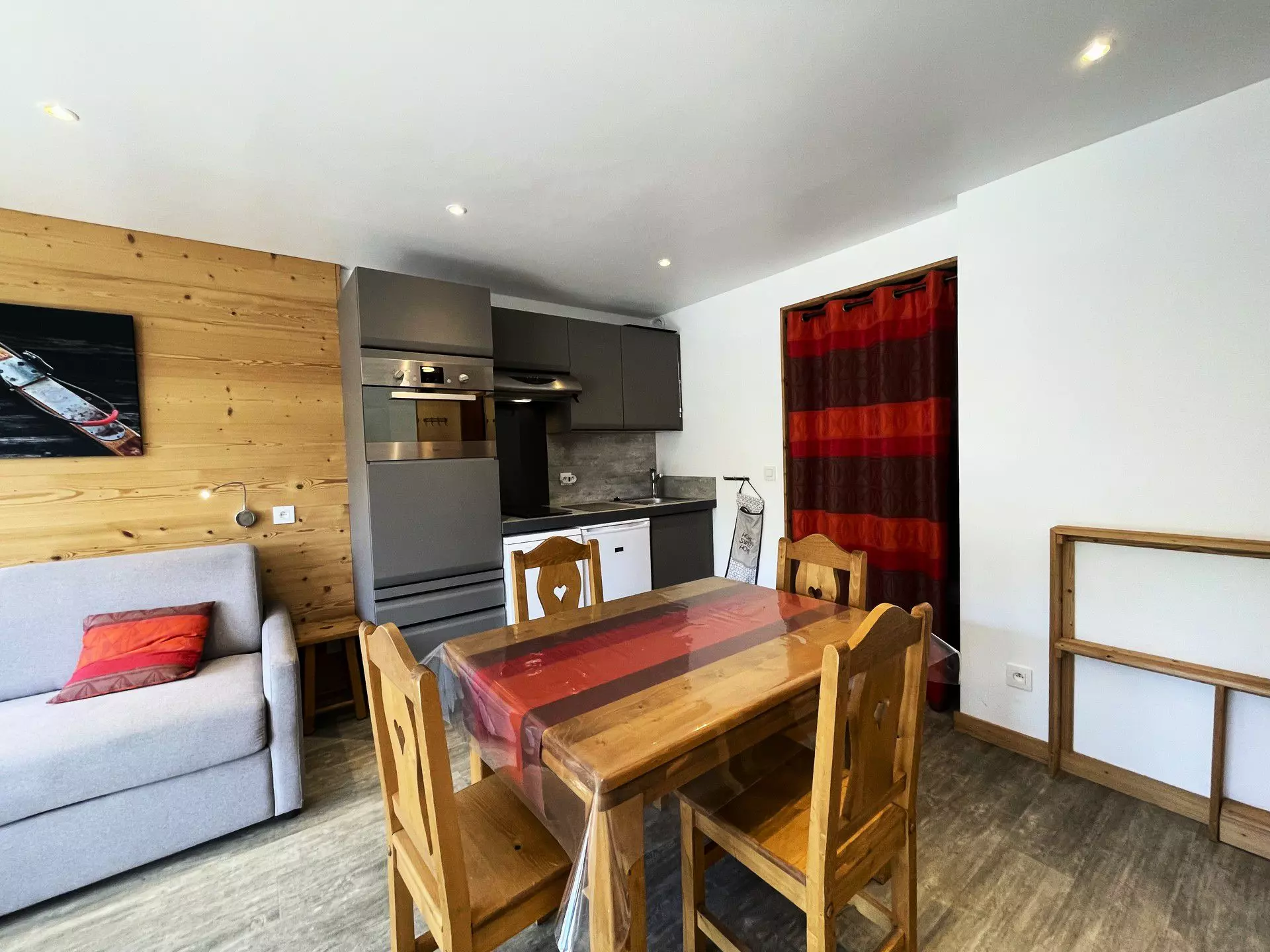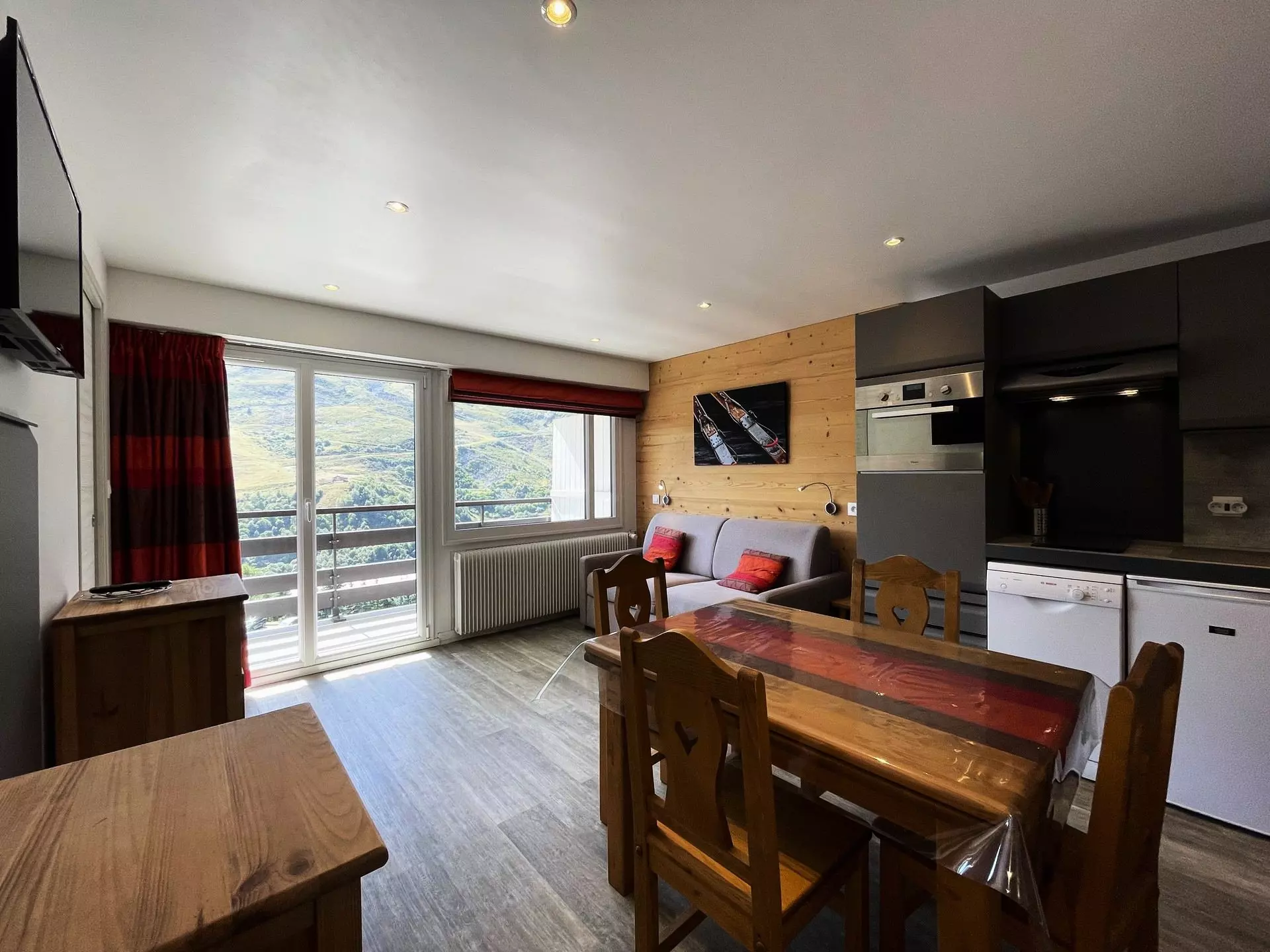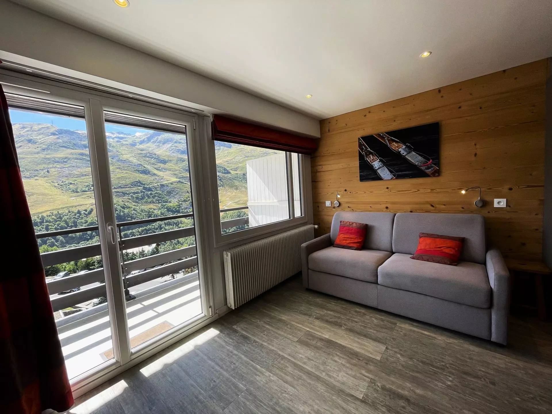 Residence Oisans (No. 62), studio with mountain corner for 4 people 27m², on the 6th floor by elevator, south-facing balcony, mountain view. Renovated in autumn 2018