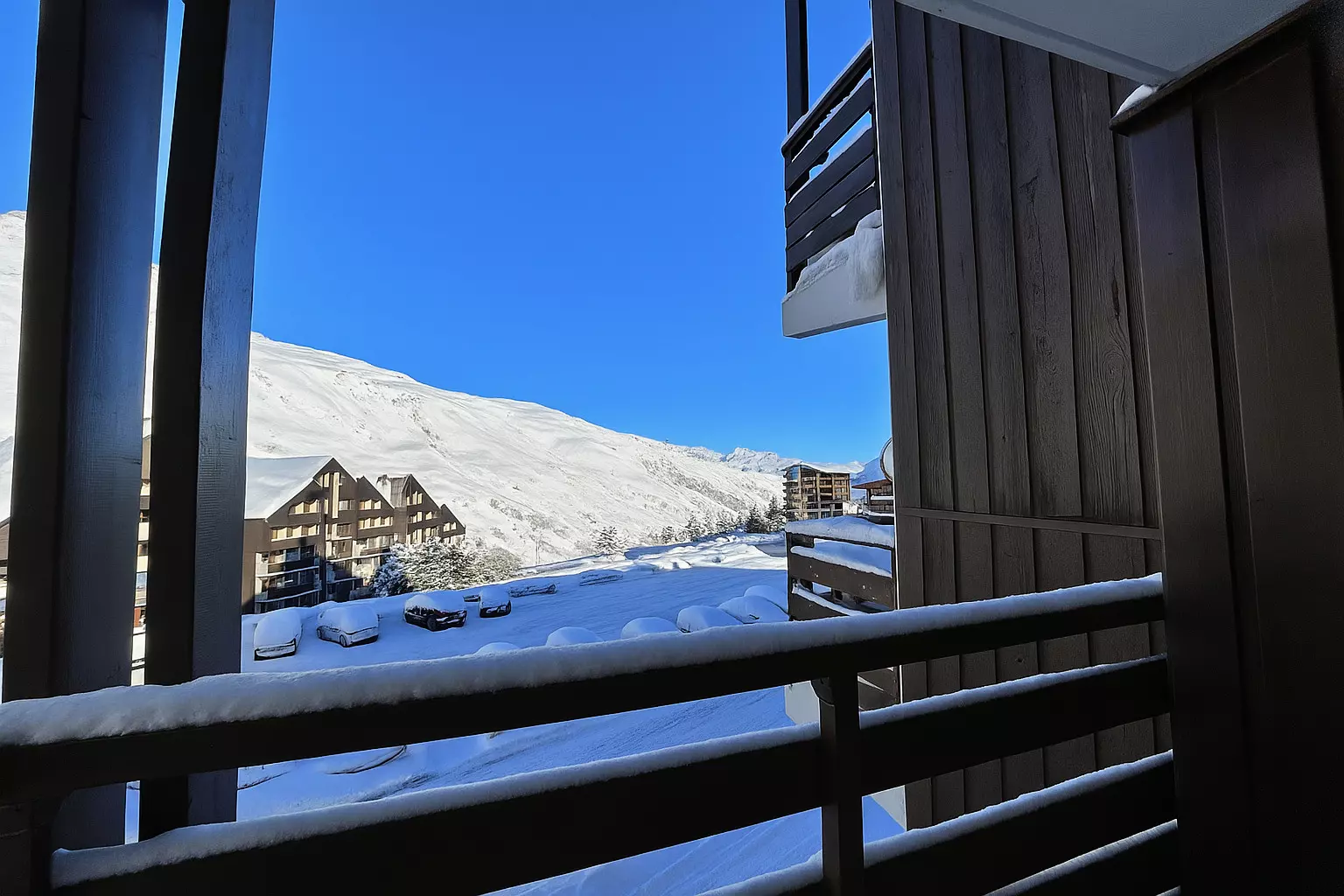 Residence Le Villaret (No. 206), divisible studio cabin for 4 people 25m², on the 2nd floor by elevator, west-facing balcony, mountain view.