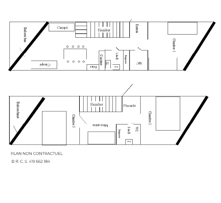 Caron Residence / entrance: cage 1 (No. 1518), 4-room duplex for 8 people, 74 m², on the 15th floor, facing North and South