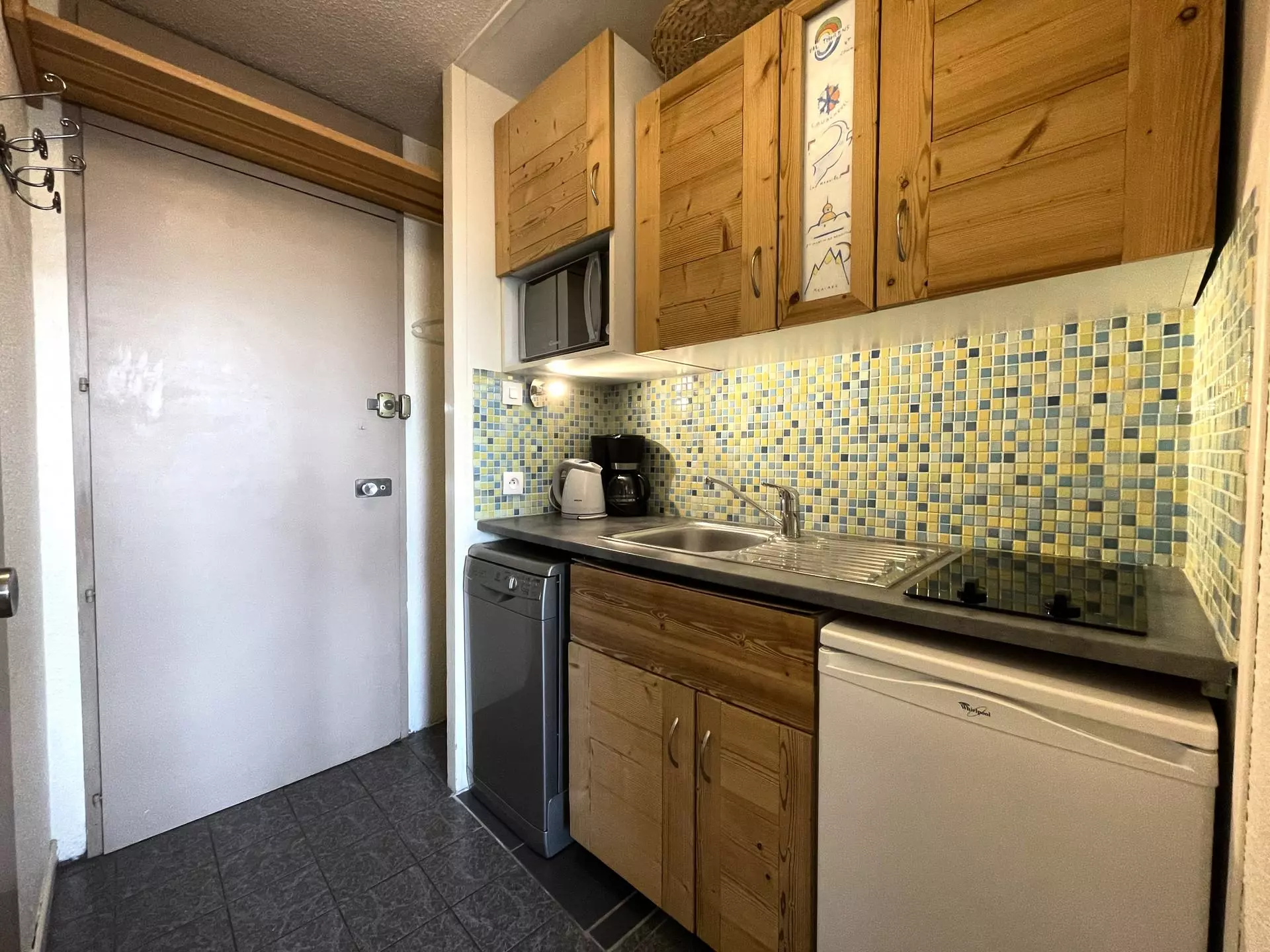 Kitchen: ceramic hob (x2), 1 mini dishwasher, 1 combi-grill oven, refrigerator (5L ice cube tray), kettle, coffee maker