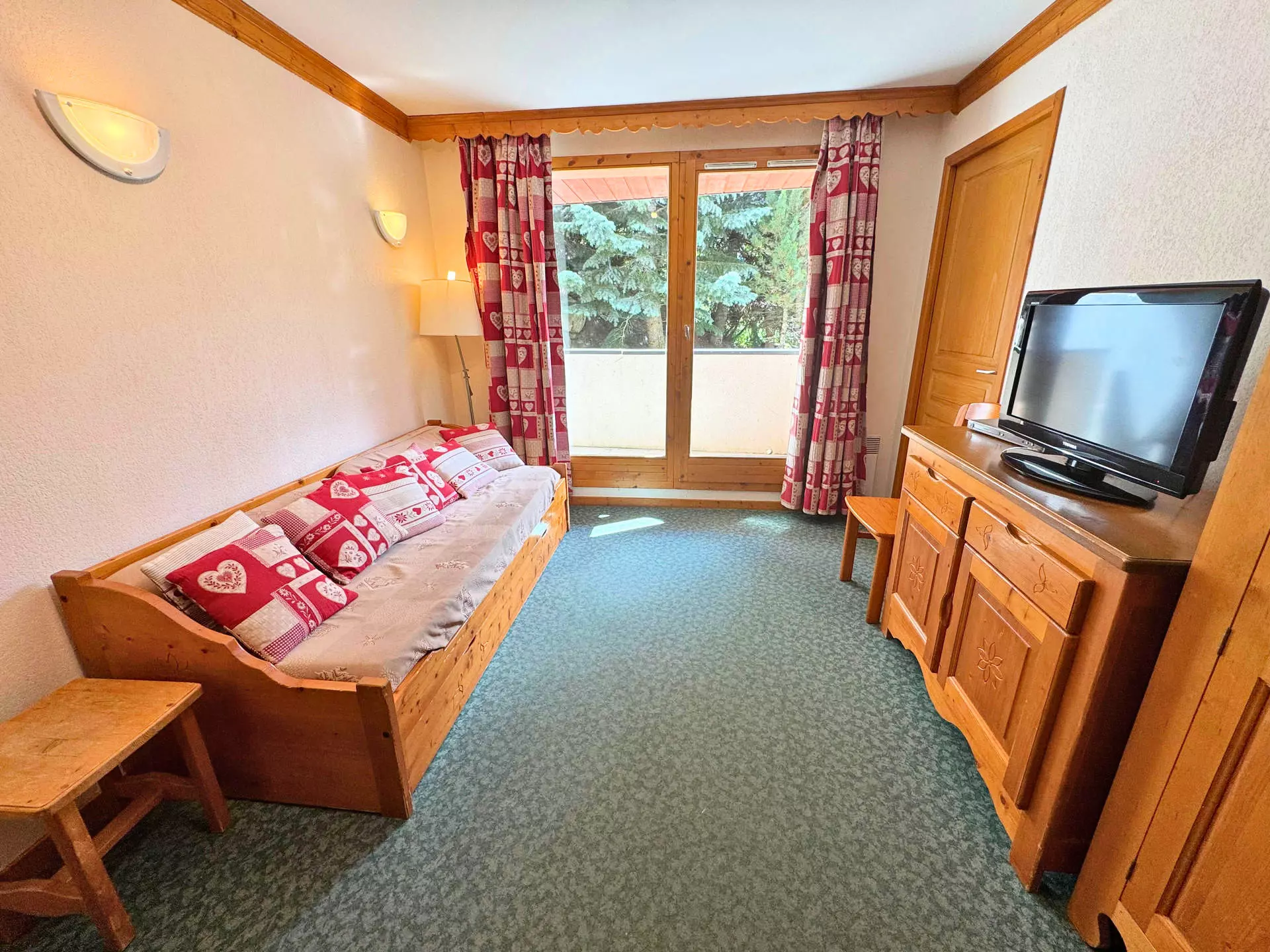 Residence Les Valmonts building A (No. 107), 2 cabin rooms for 4/6 people 40m², on level -8 by elevator and on the 1st floor balcony side, south-facing balcony, mountain view