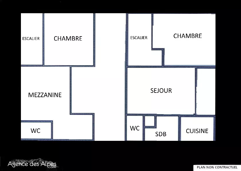 Jettay Residence entrance "C" Choucas (No. 143), 3-room duplex and mezzanine for 6/7 people 60m², on the 3rd floor without elevator, east-facing balcony, view of the resort