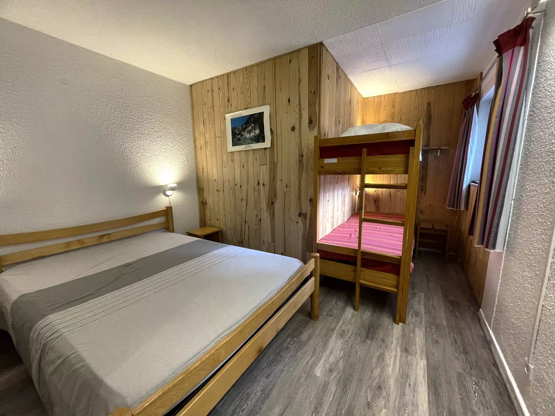 Bedroom: 1 double bed (140cm), 1 bunk bed (2x80cm)