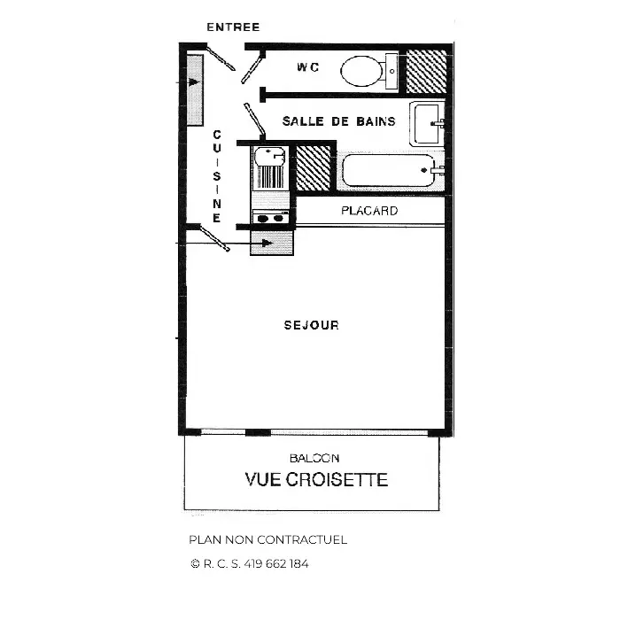 Residence Lac du Lou (No. 109), studio for 4 people 24m², on the 1st floor with elevator, south-facing balcony