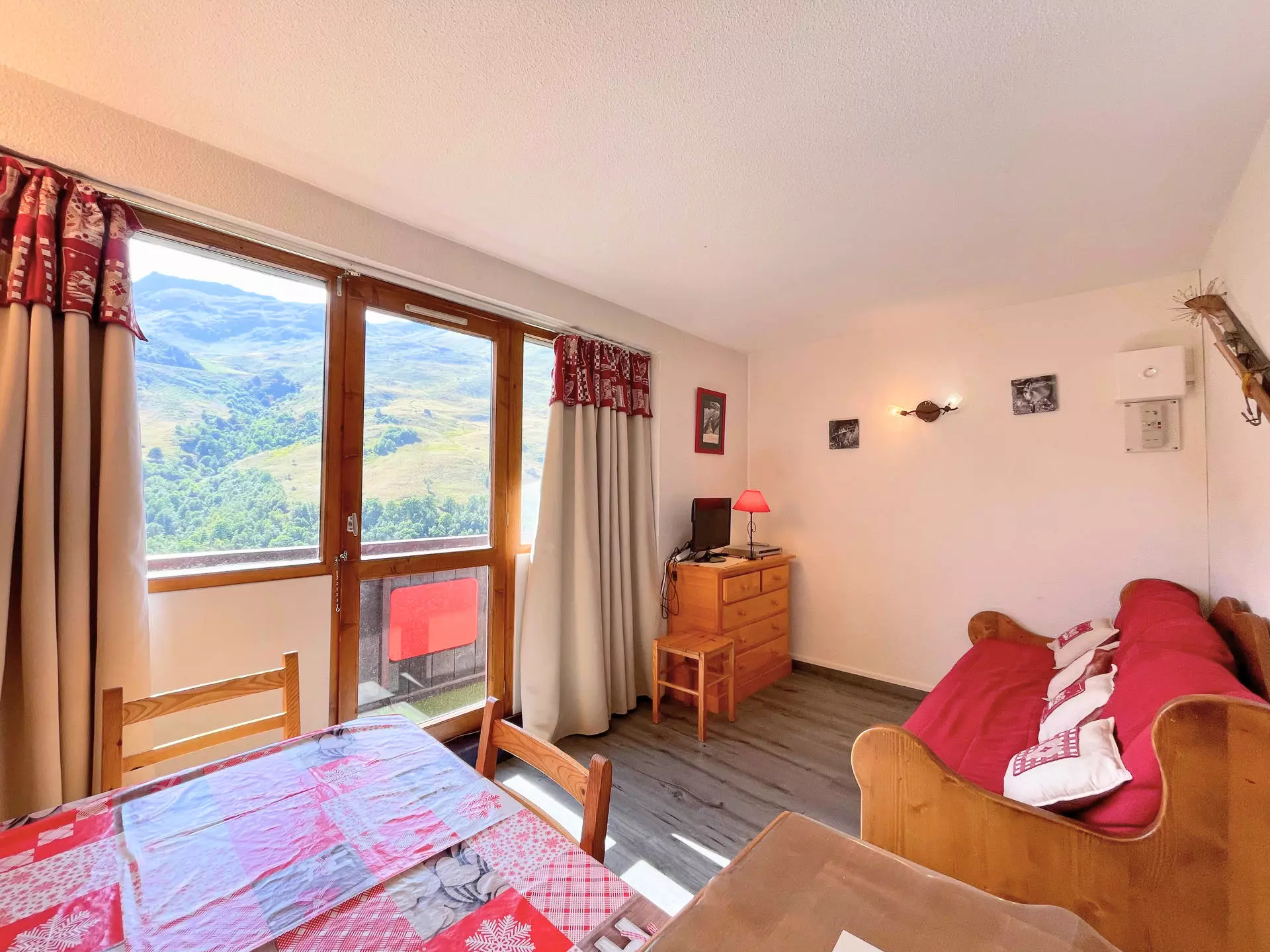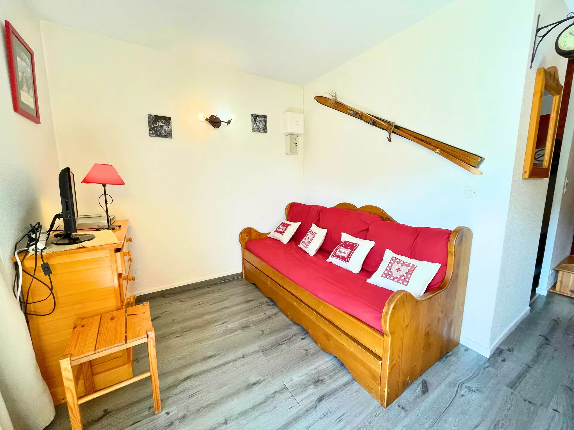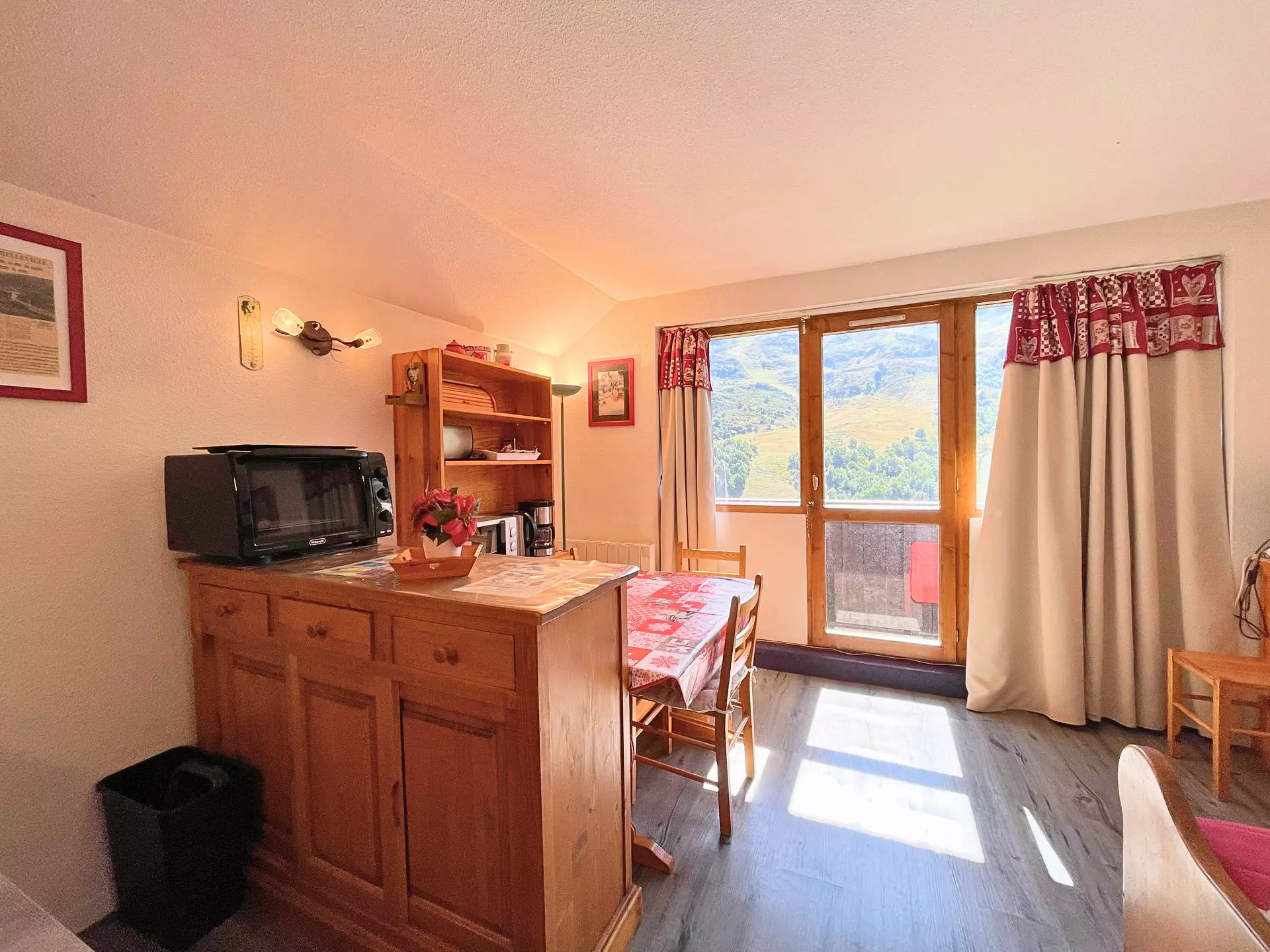 Sarvan Residence (No. 509), studio cabin for 4 people 24m², on the 5th floor by elevator, southwest-facing balcony, mountain view. Quiet residence located at the foot of the slopes