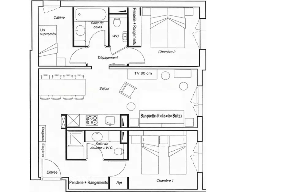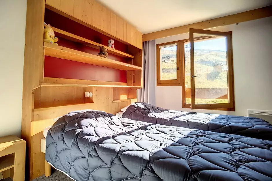 Cabin (closed by a door, with window): 2 single bunk beds.