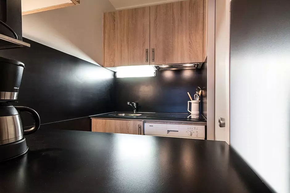Kitchen equipped with 4 ceramic hobs, refrigerator, combi oven and microwave, dishwasher, coffee maker, toaster and kettle, fondue and raclette set
