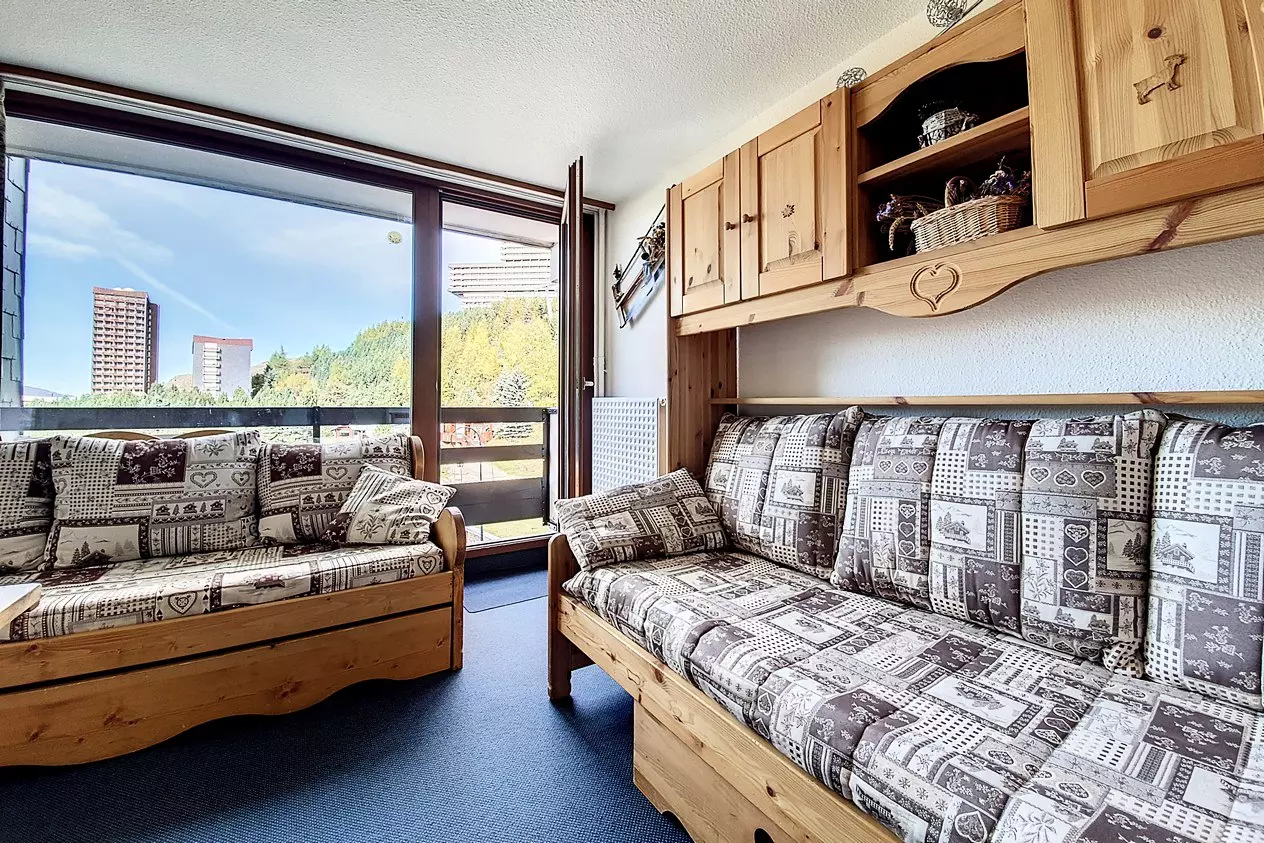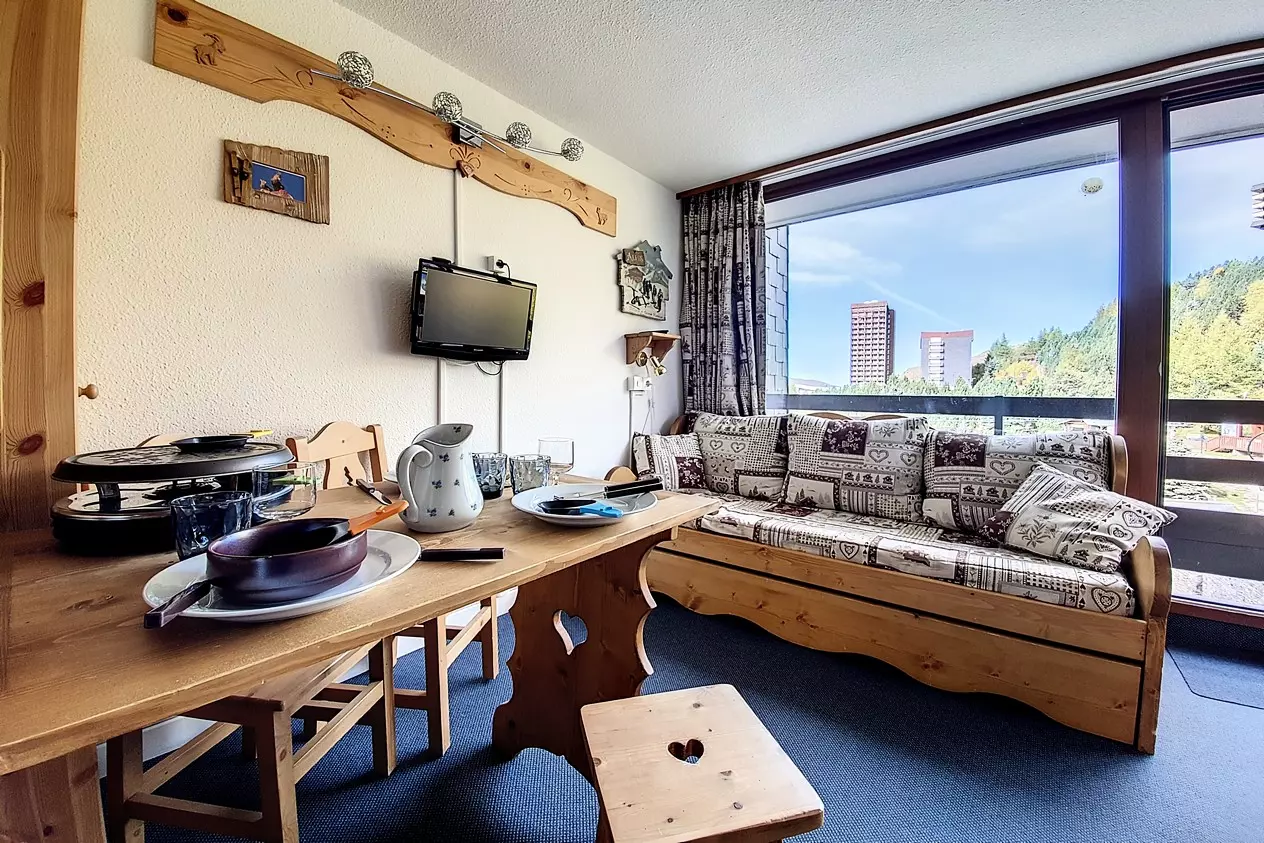 Living room: 1 single bed and 1 sofa bed + 1 pull-out bed. Equipped with a television and DVD player.