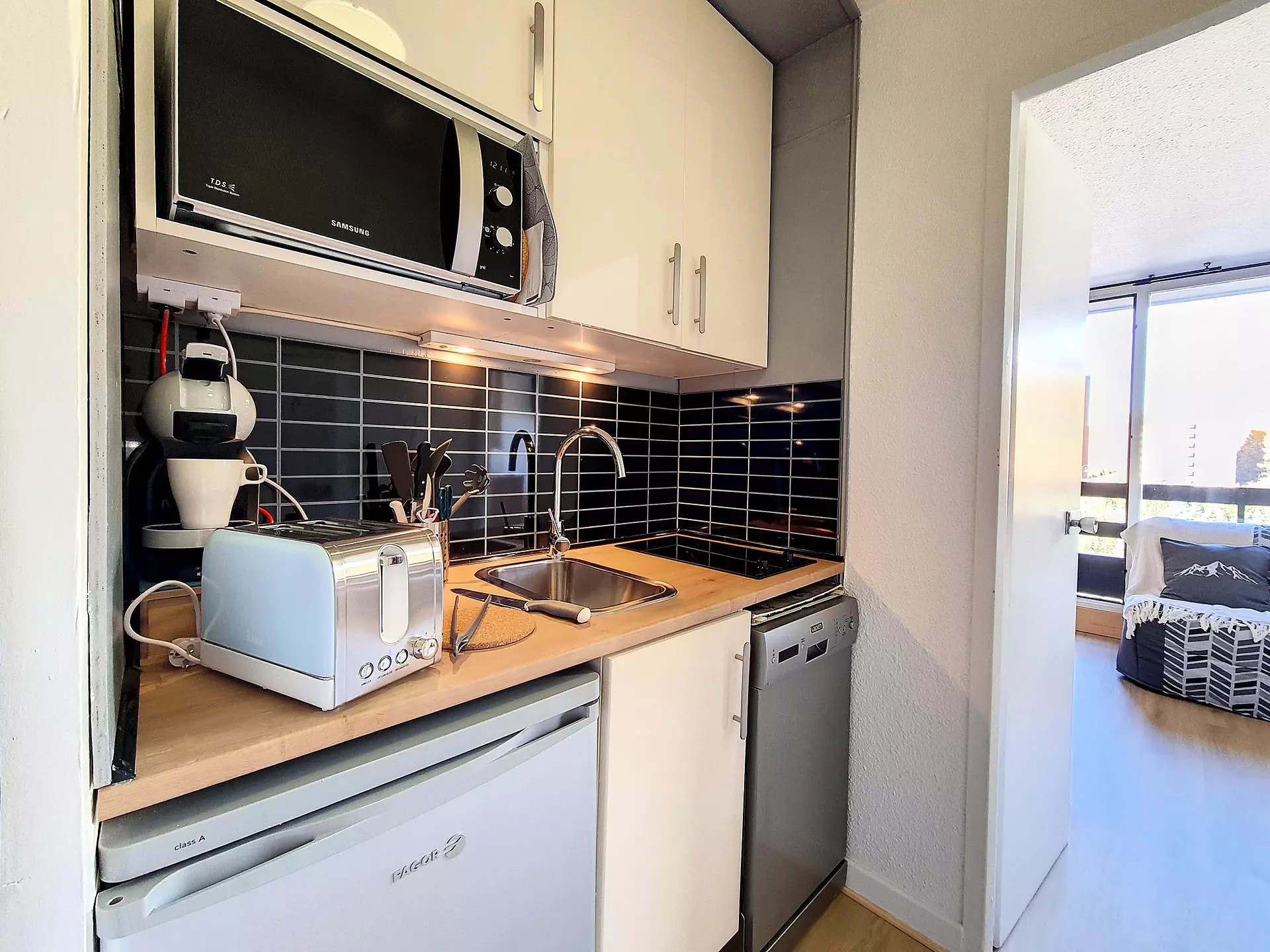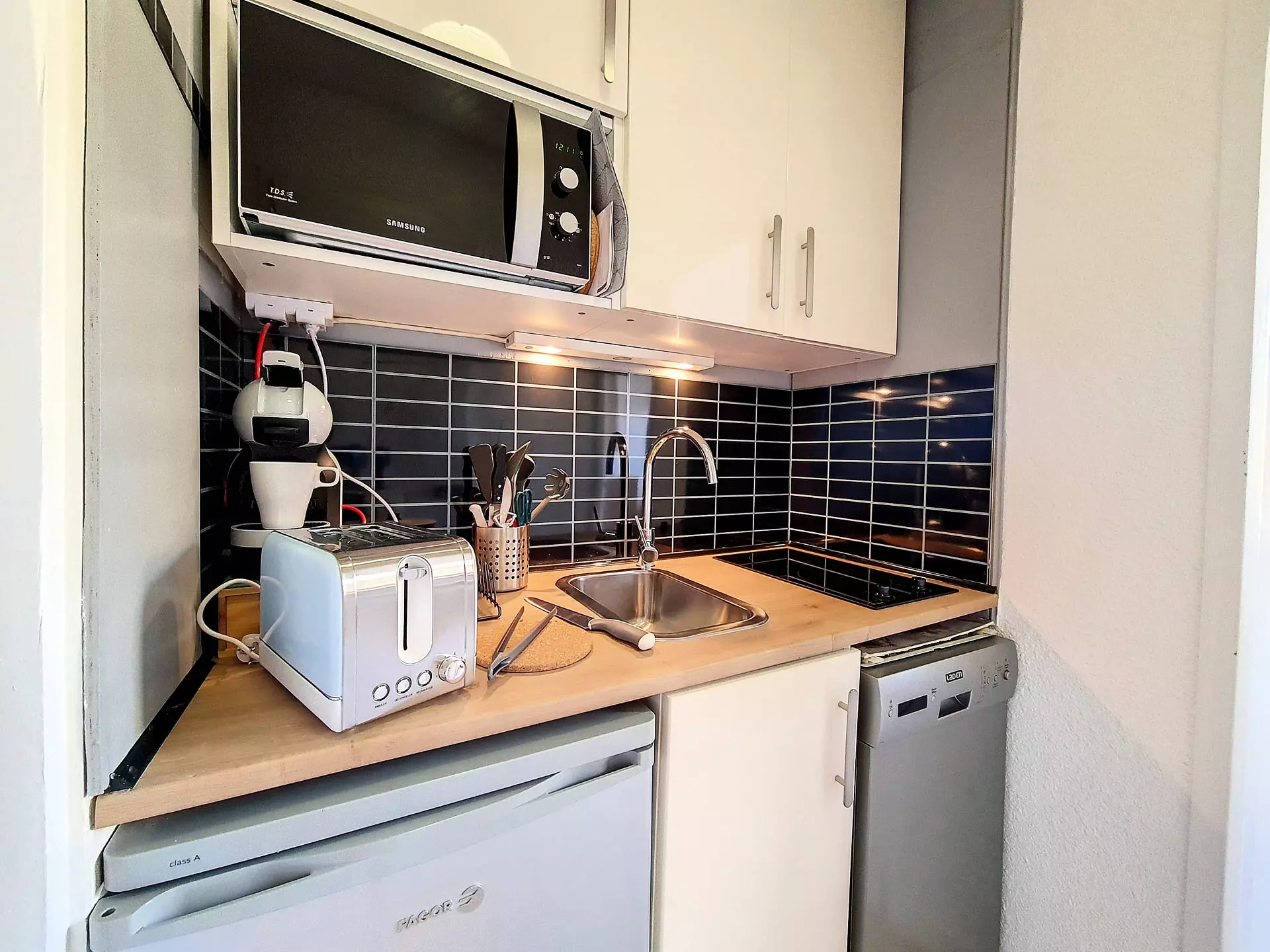 Kitchen: 2 hotplates, microwave grill, refrigerator, mini dishwasher, kettle and coffee maker.