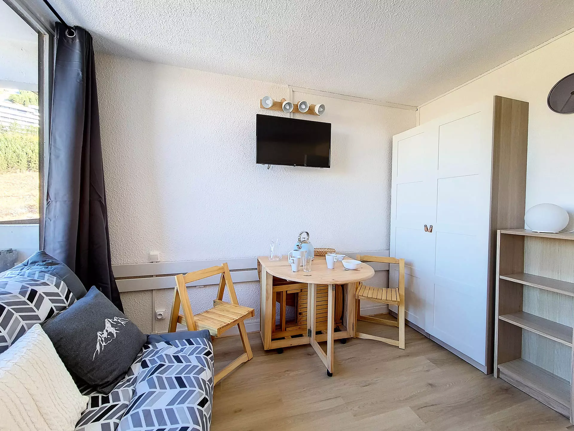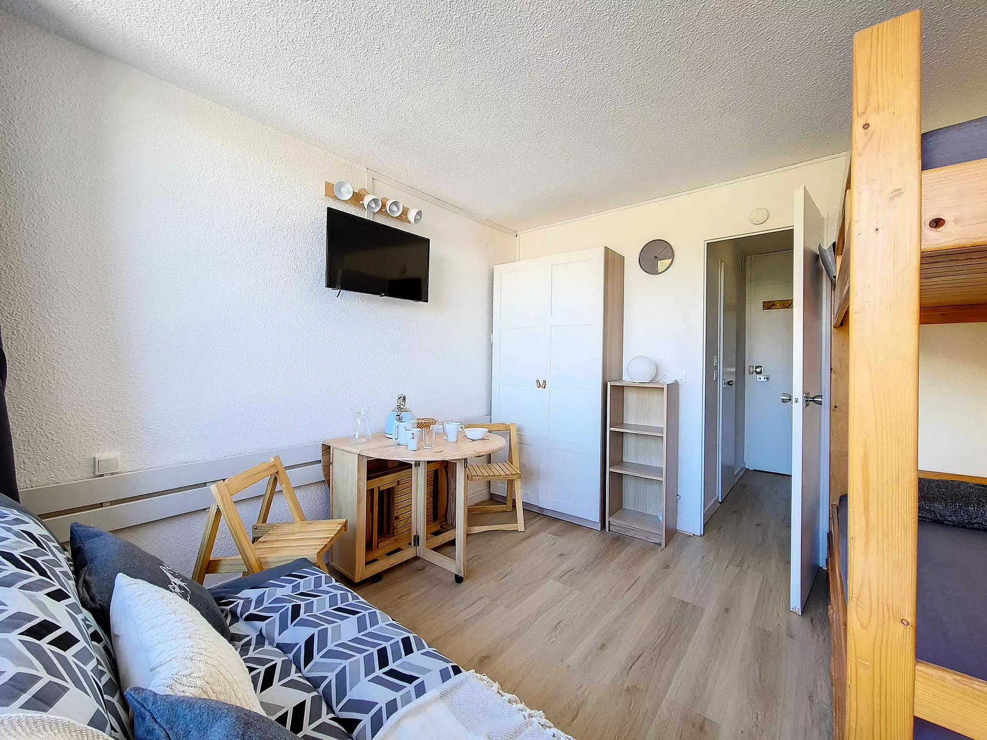 Living room: 1 double sofa bed + 1 single bed. Equipped with a television.