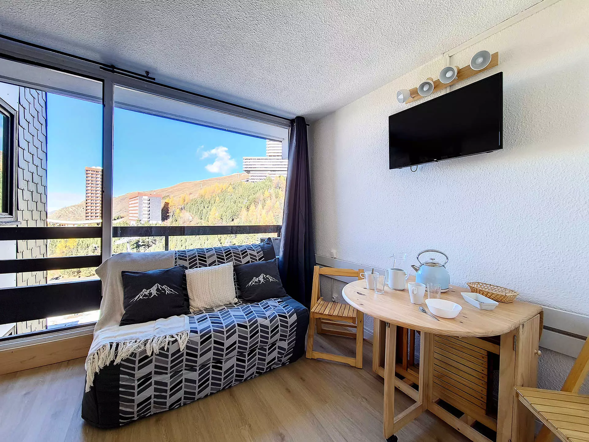 Apartment equipped with blankets