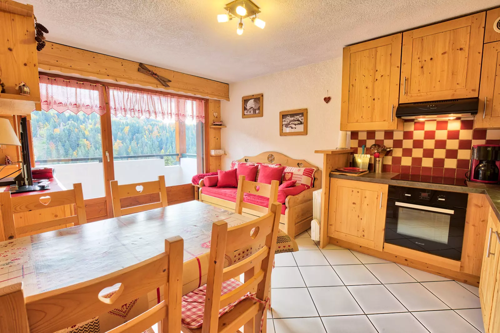 This 42m², 3-room apartment sleeps 6-8. Located on the 1st floor, it features a south-facing balcony with views of Mont Charvin and the valley.