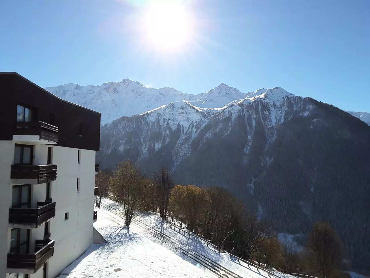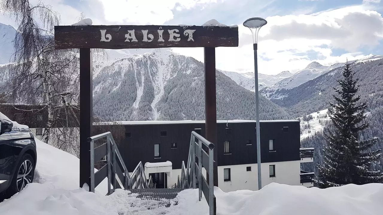 This quiet, sunny, 1970s residence features four floors and offers beautiful views. Free, uncovered communal parking is available below the residence. Access is via stairs. The slopes are approximately 200 meters away, and shops are nearby (sports shops and a mini-market).