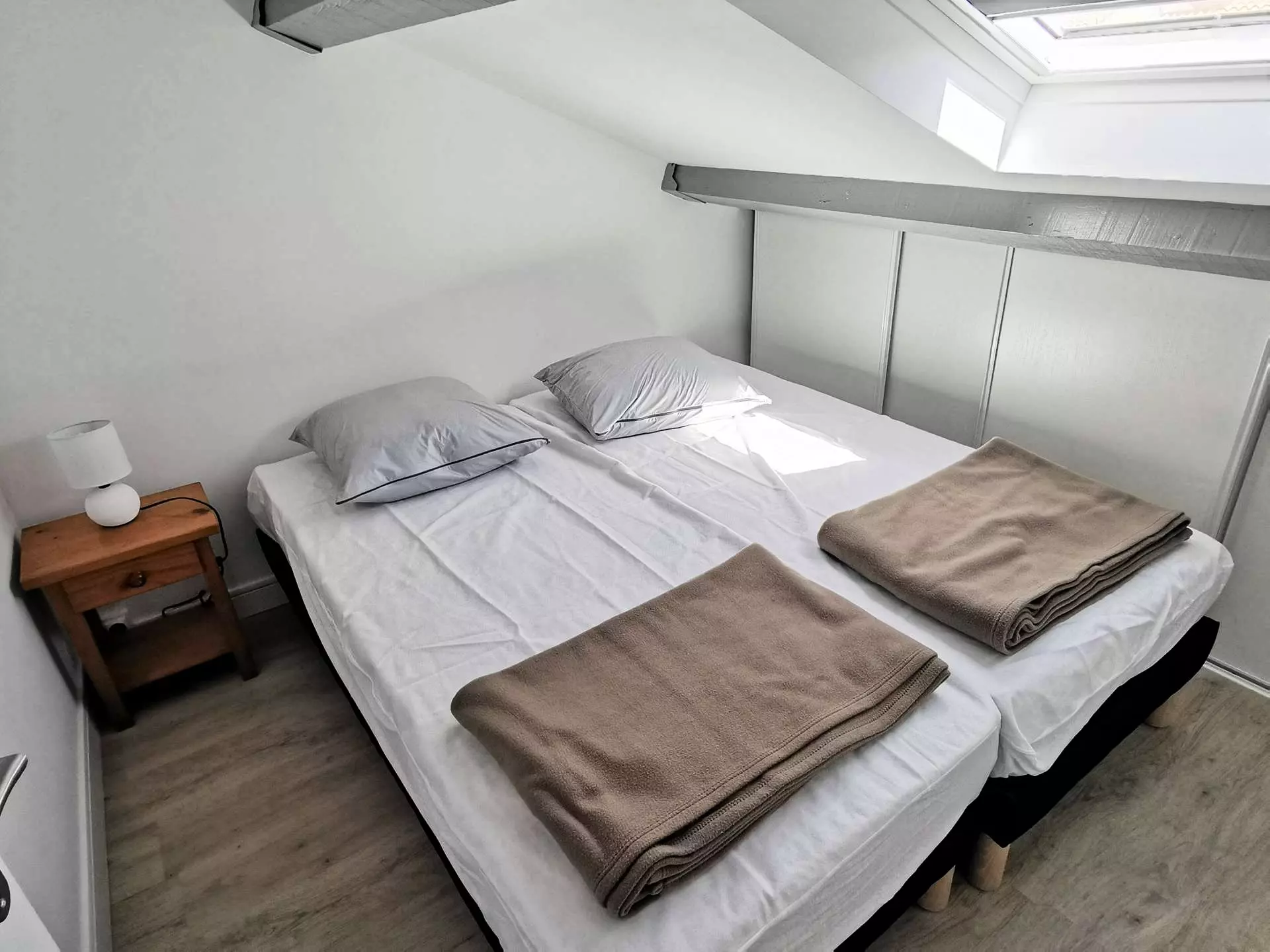 - A small bedroom upstairs with two single beds