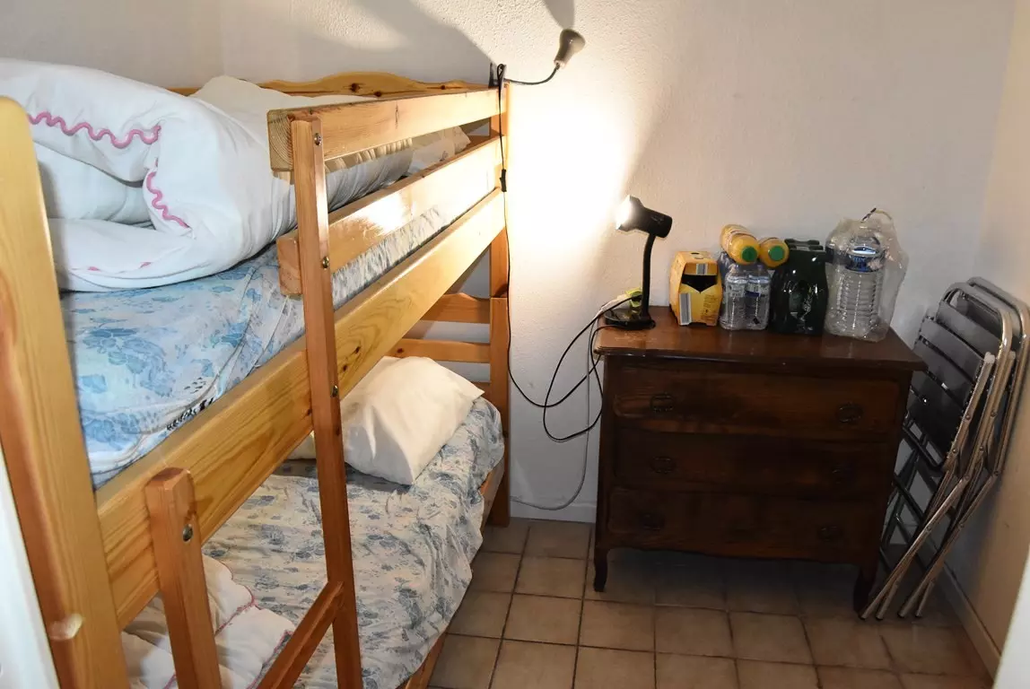 - A small bedroom with bunk beds