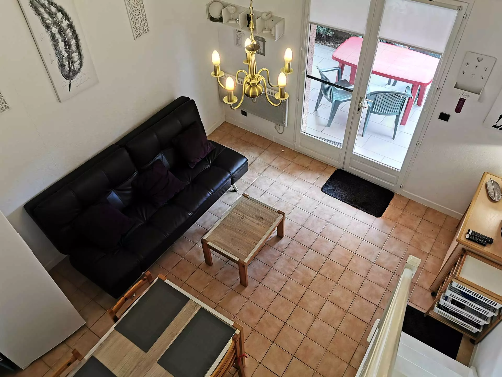 - A living room with a two-person sofa bed