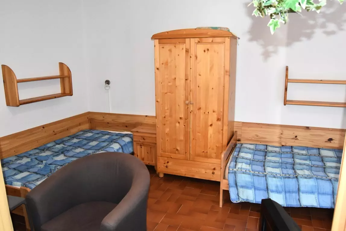 - A sleeping area with two single beds