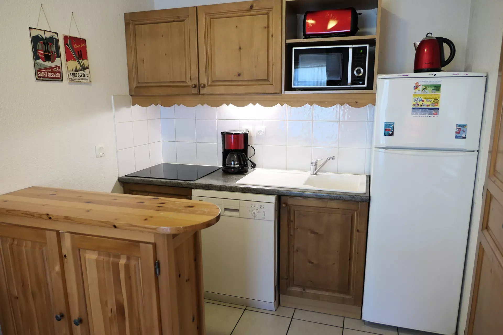 - Kitchen equipped with dishwasher, ceramic hob, refrigerator, microwave, filter coffee maker, toaster, kettle.