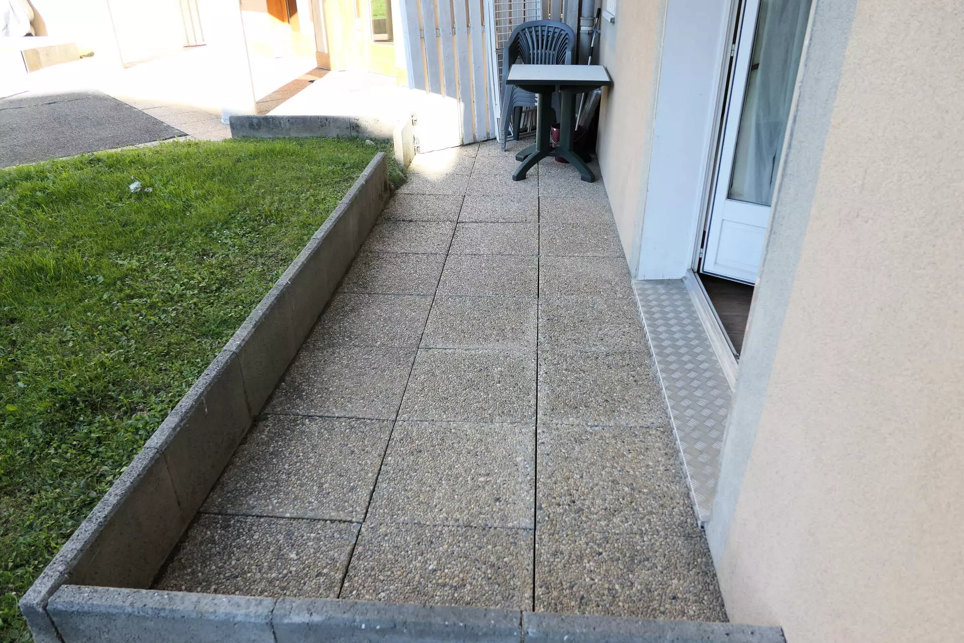 The apartment is on the ground floor. It offers a southern exposure with a terrace.
