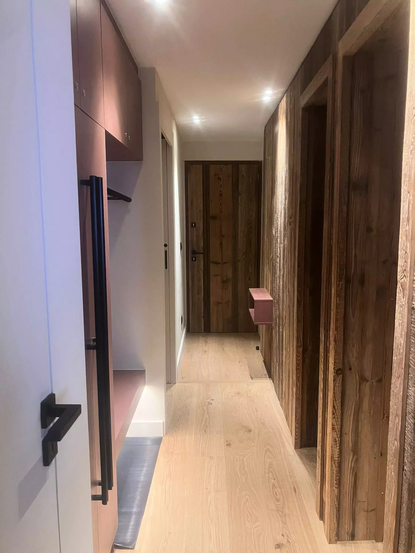The apartment is on the ground floor. It offers an eastern exposure with a view of the Mont Blanc range and has a terrace.