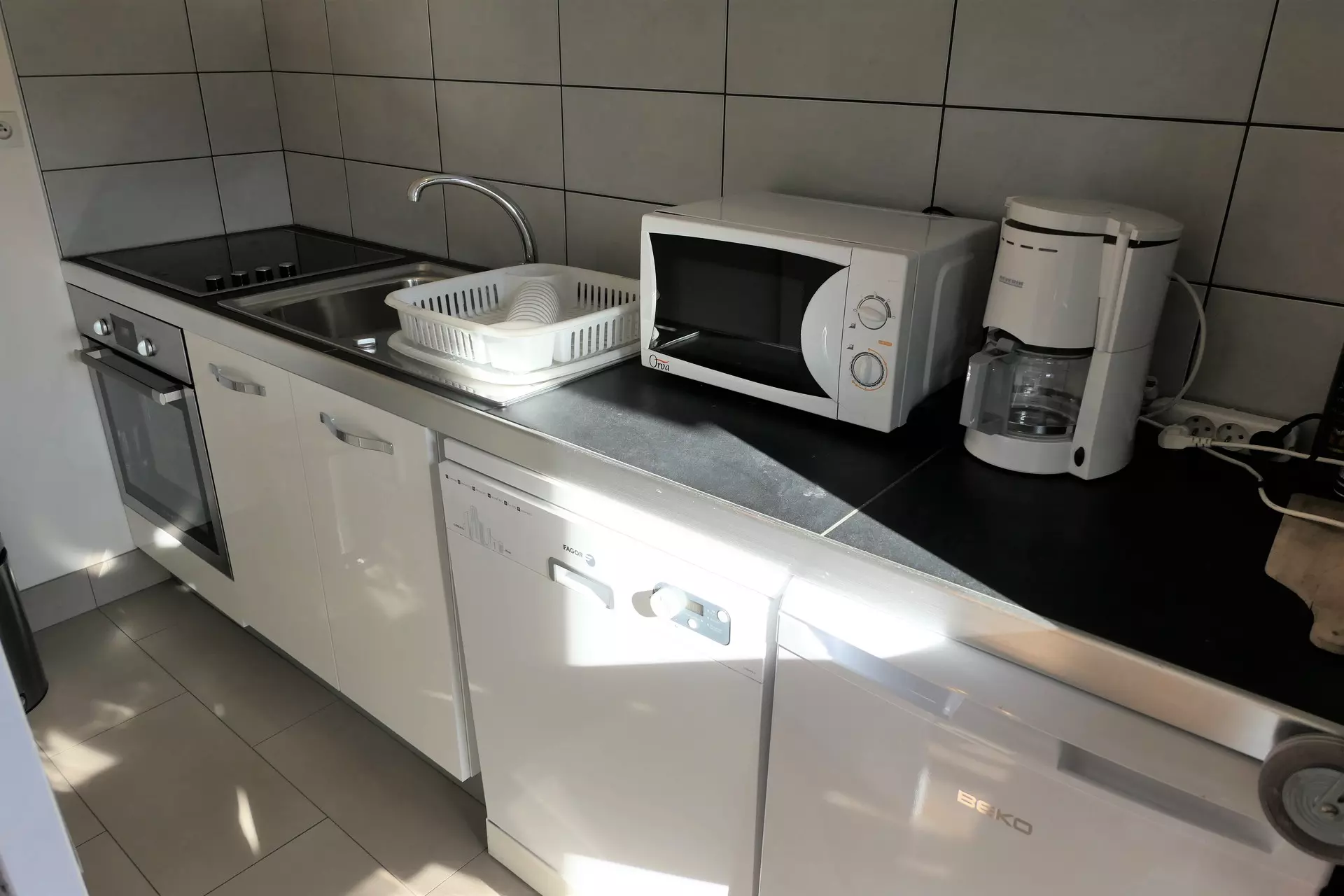 - a kitchenette equipped with 2 electric hotplates, an oven, a refrigerator and a dishwasher.