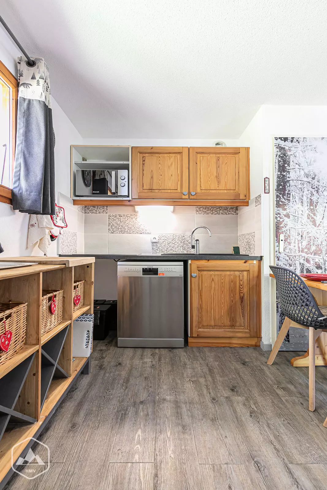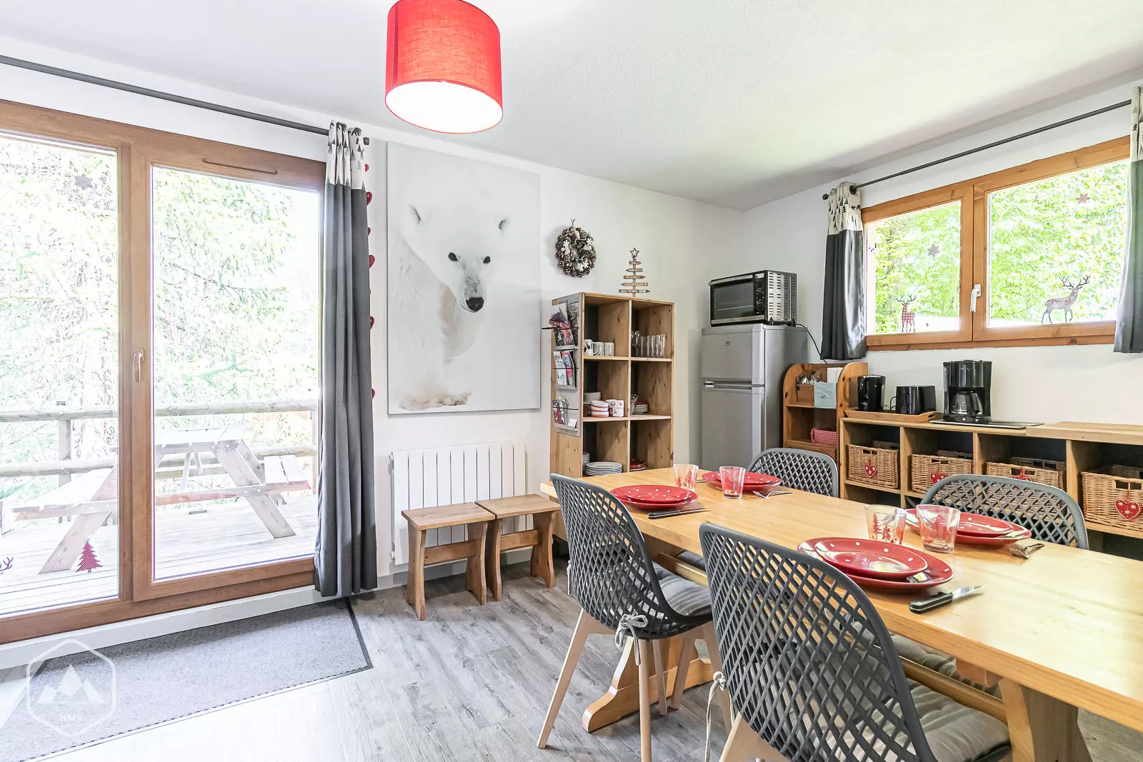 - equipped kitchen area, open to the living room with large refrigerator and freezer compartment, dishwasher, toaster, kettle, coffee maker, fan oven, microwave, raclette set, crepe party, vitroceramic hob, pressure cooker.