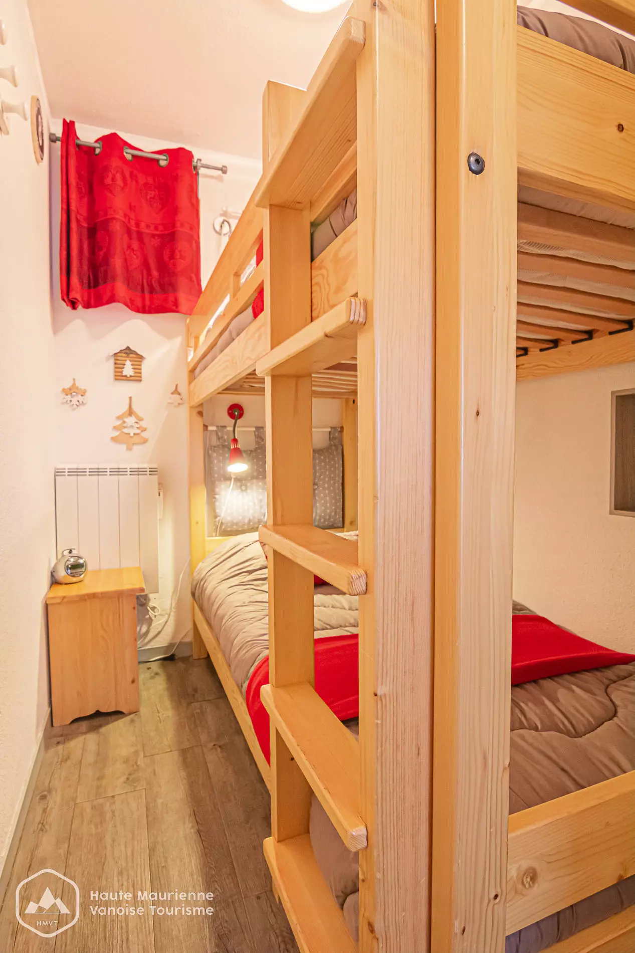 - cabin bedroom with bunk beds of 80x200 for 2 people with storage and wardrobe.