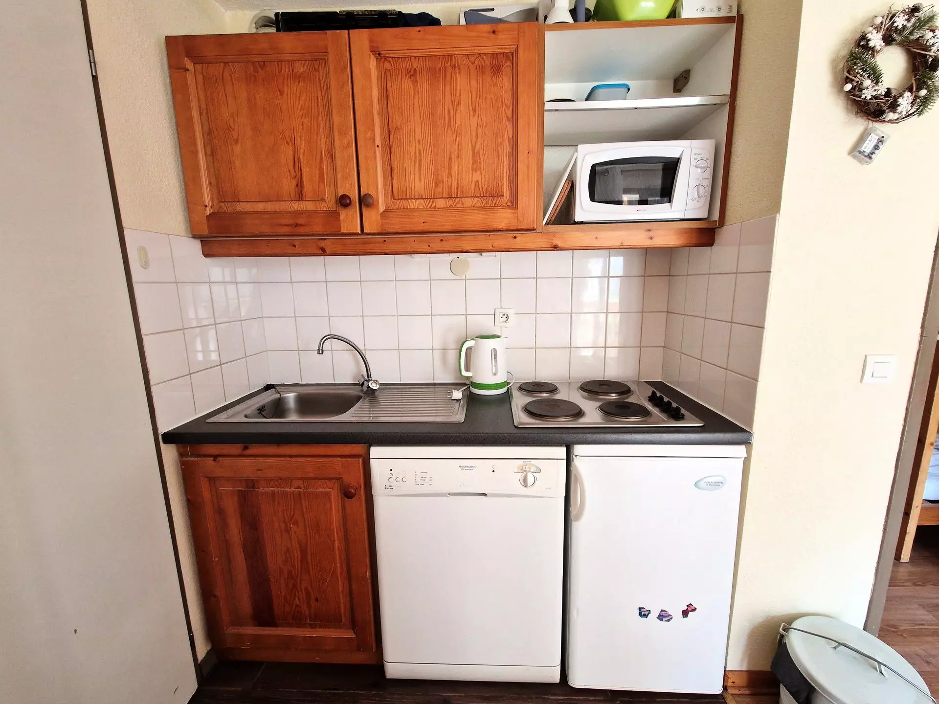 - Kitchen area with 4 hotplates, refrigerator, microwave, dishwasher.