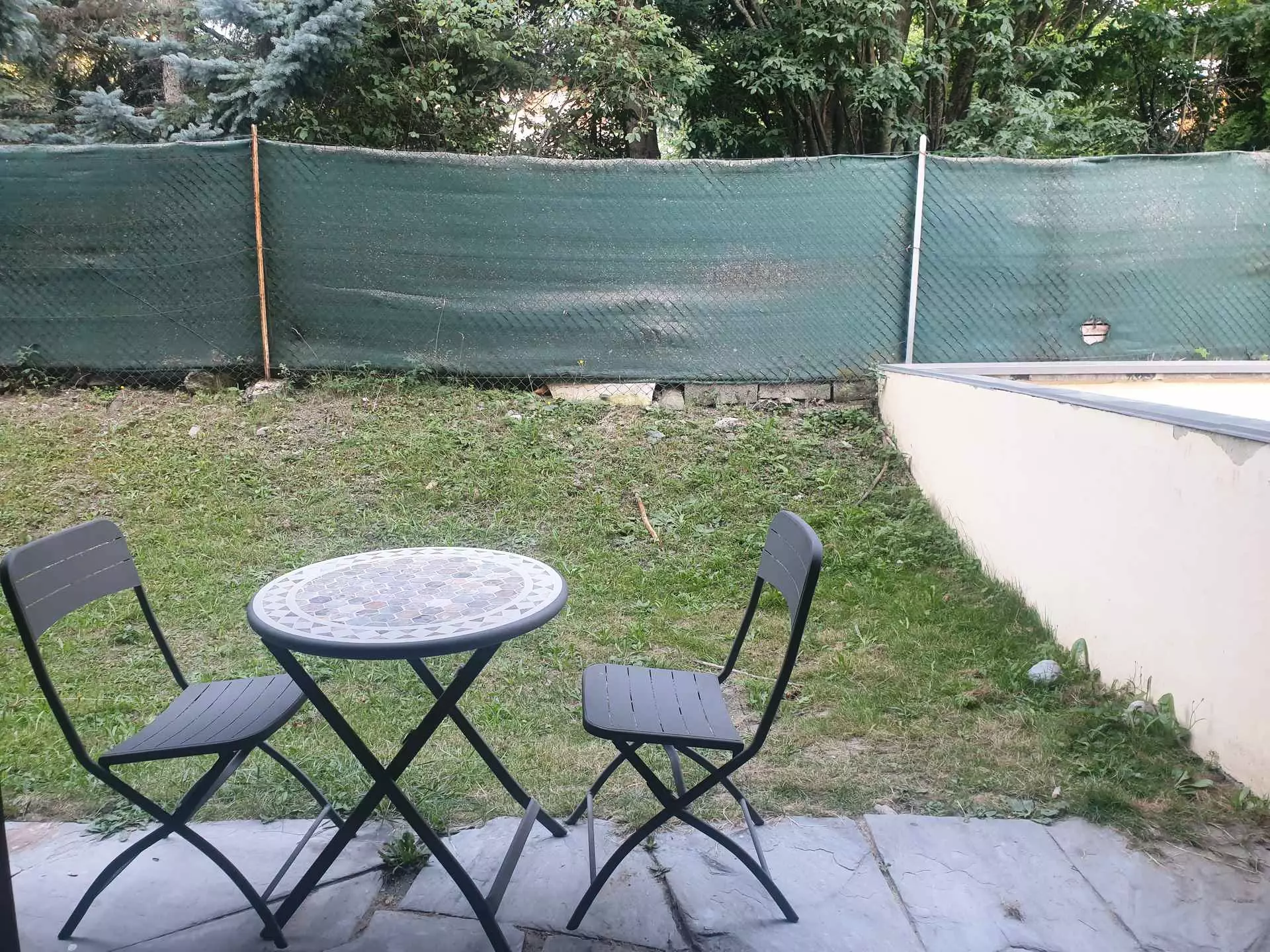 Terrace (5m²/West) with 1 garden table and two chairs. No parking, public parking nearby.