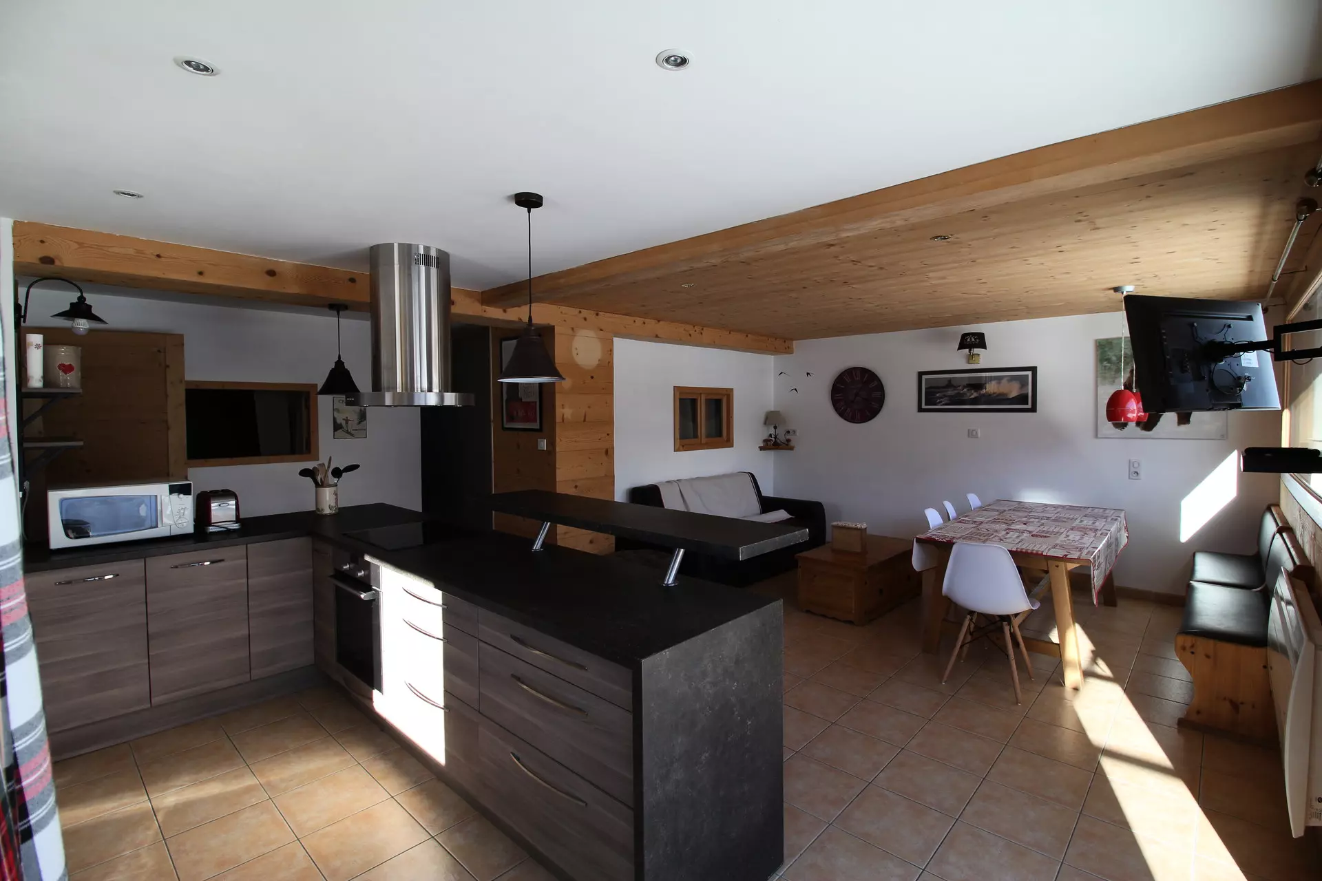 - Kitchen area: oven, microwave, dishwasher, refrigerator, freezer and induction hob (3 burners).