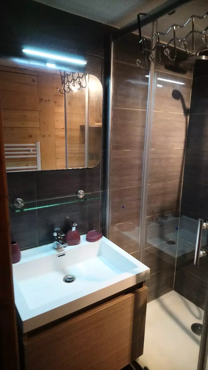 Shower room: sink, shower, hairdryer and washing machine. Separate toilet