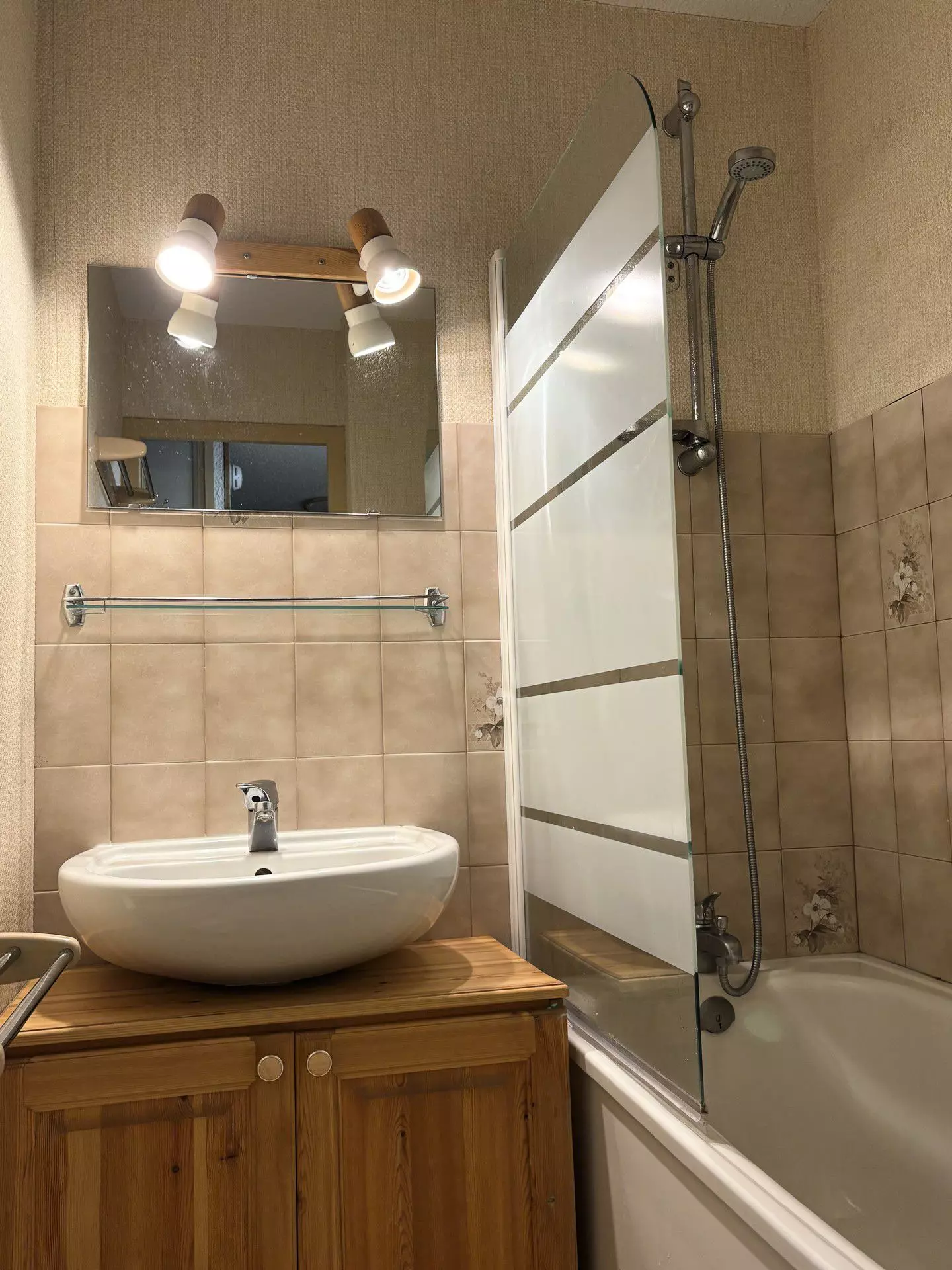 Bathroom: sink, bathtub and hairdryer. Separate toilet.