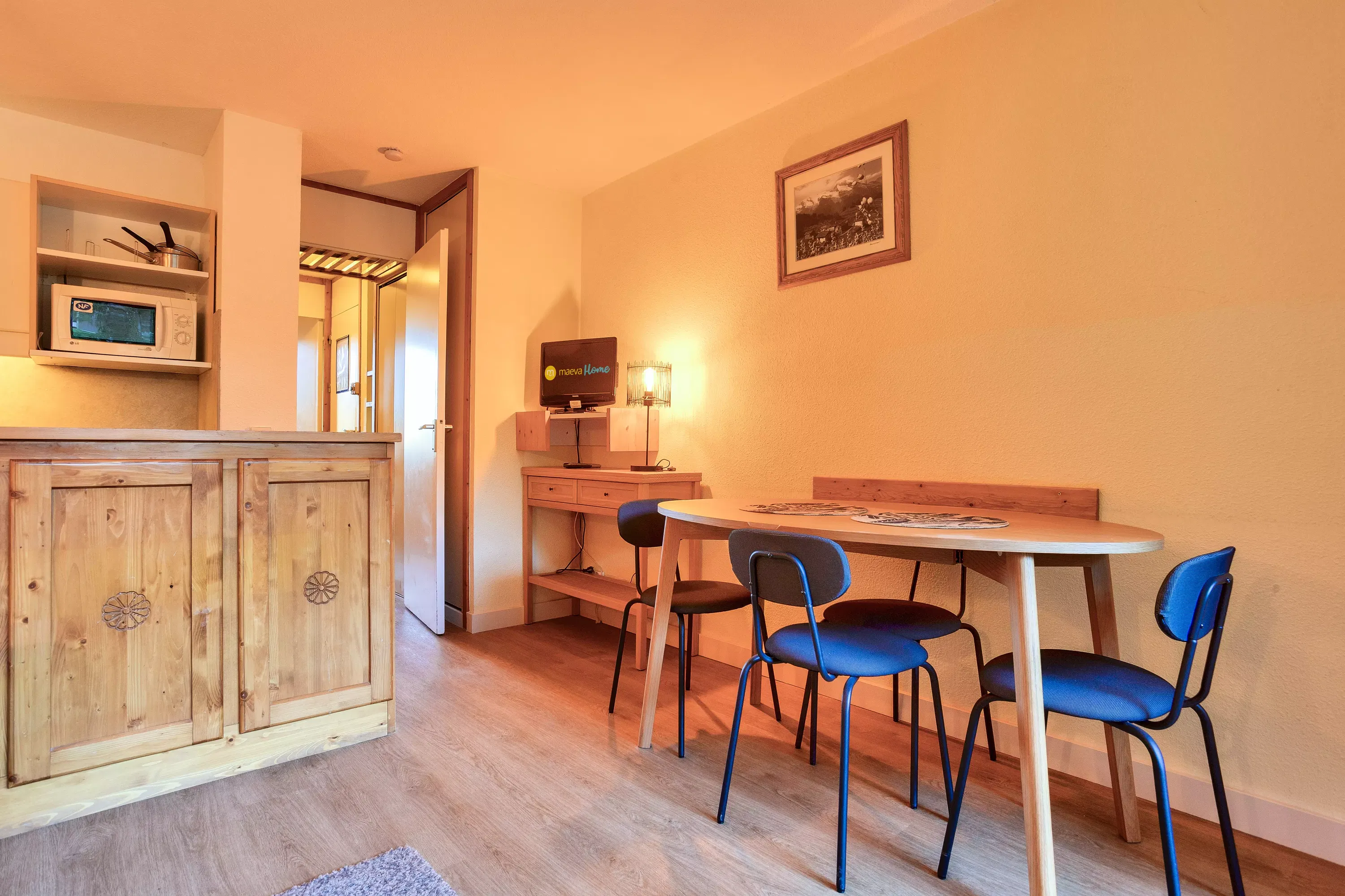 Living room facilities: 2 sofa beds, one with a pull-out bed. Dining area: a table with 4 chairs.