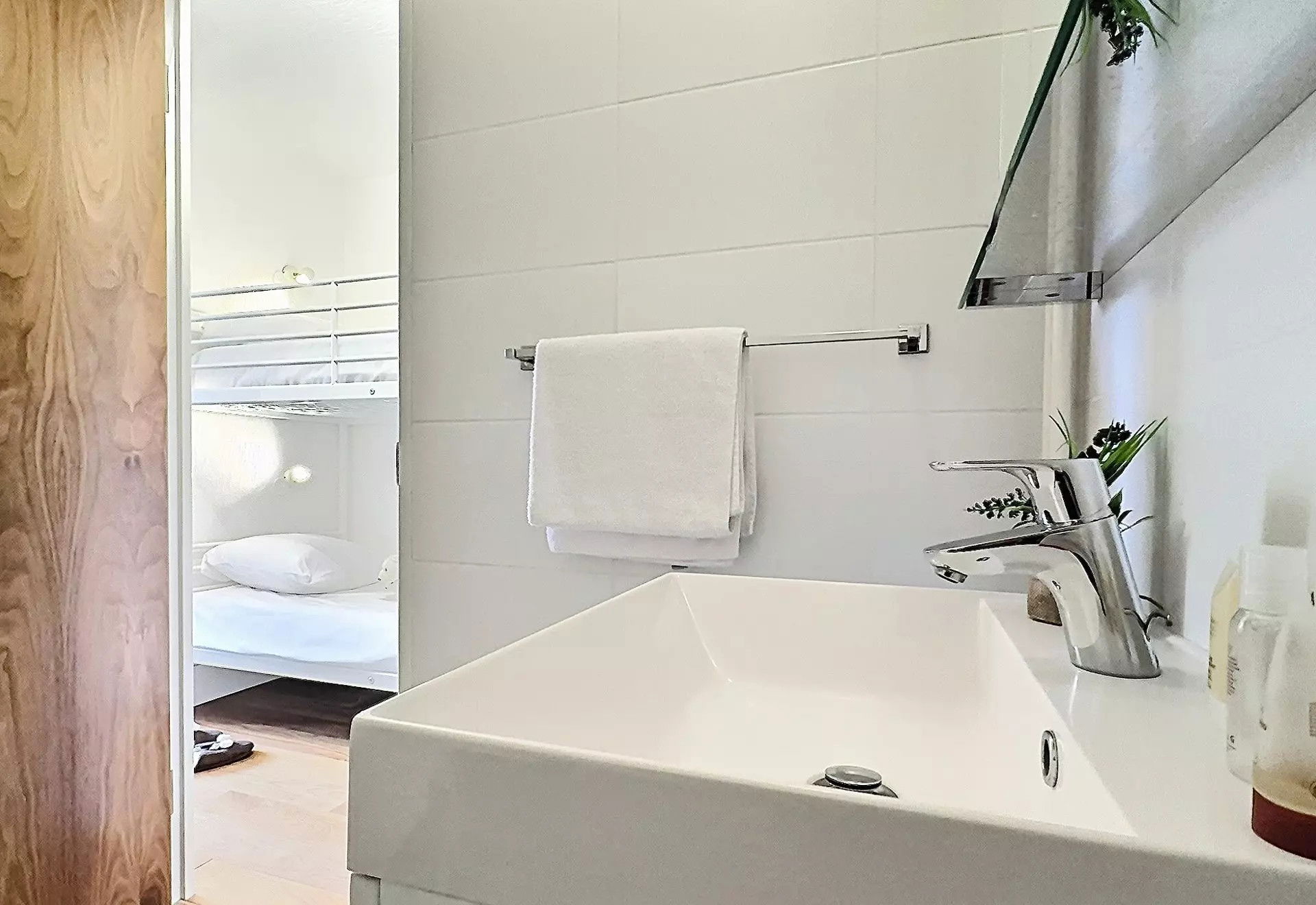A sleeping area is set up in the entrance with 1 set of bunk beds.