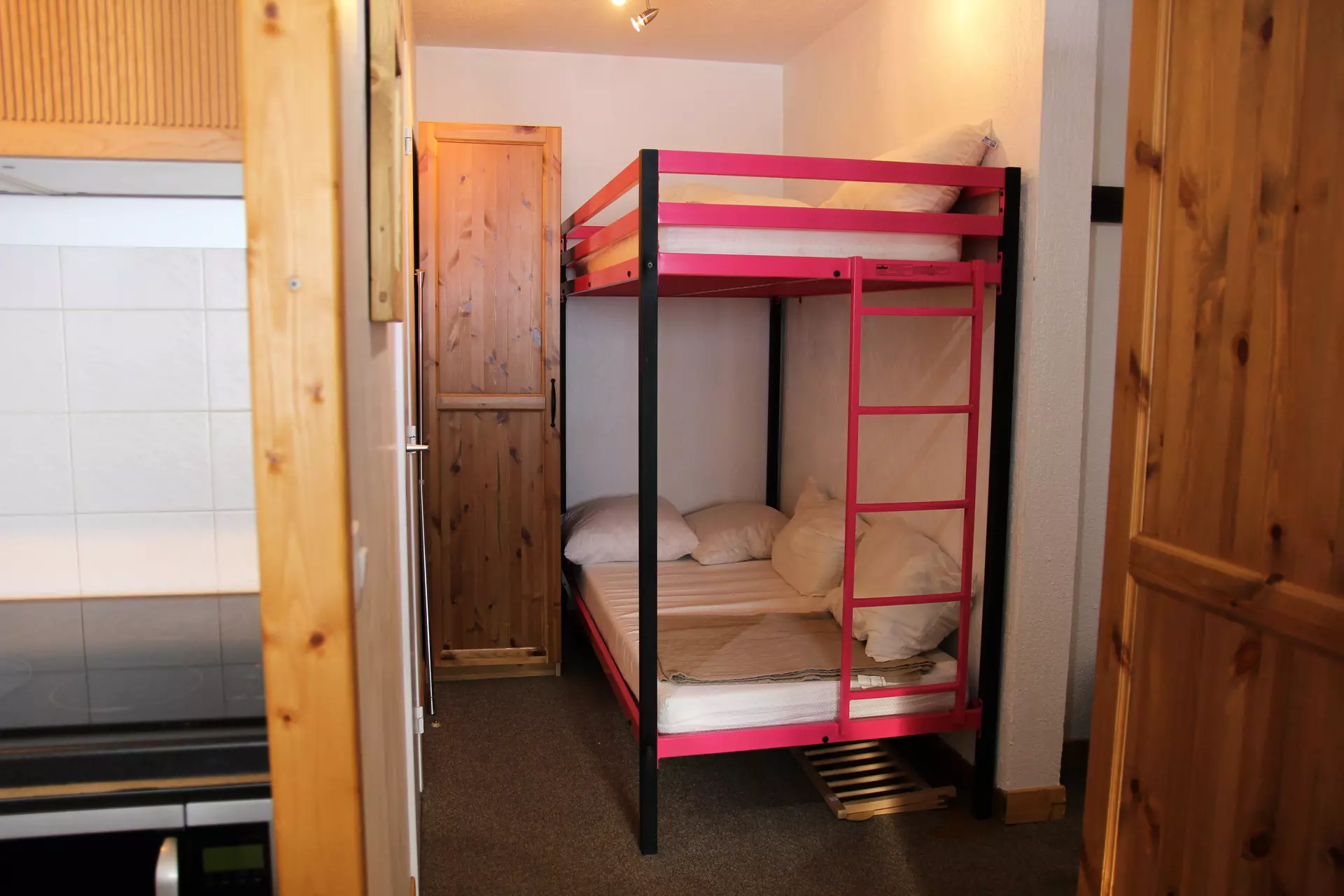 It has bunk beds in the entrance, a sofa bed in the living room and a south/east facing balcony.